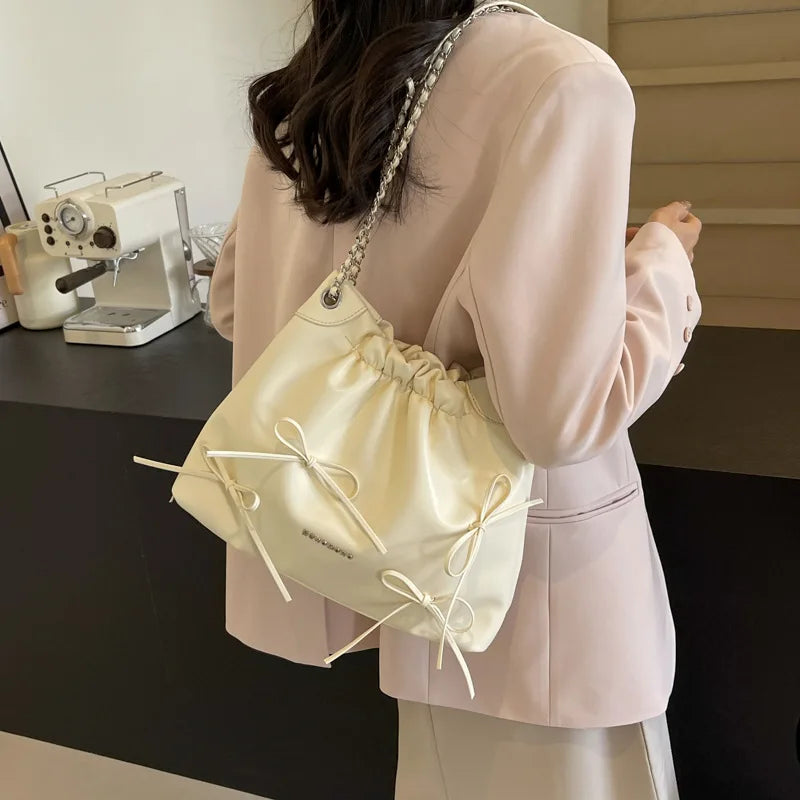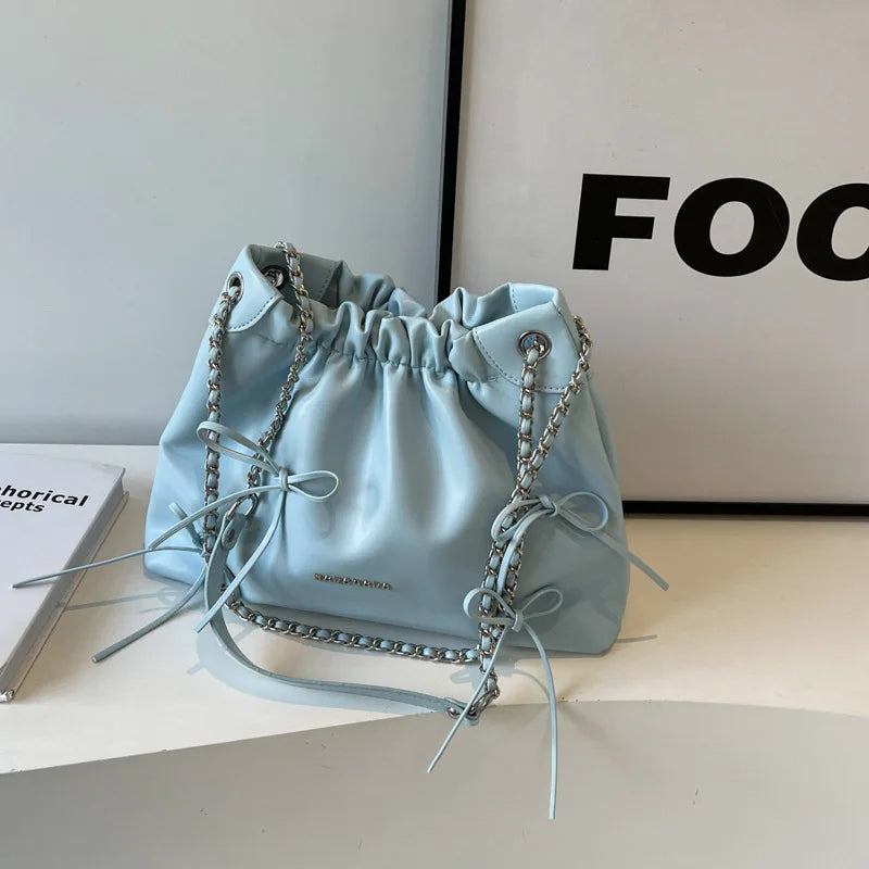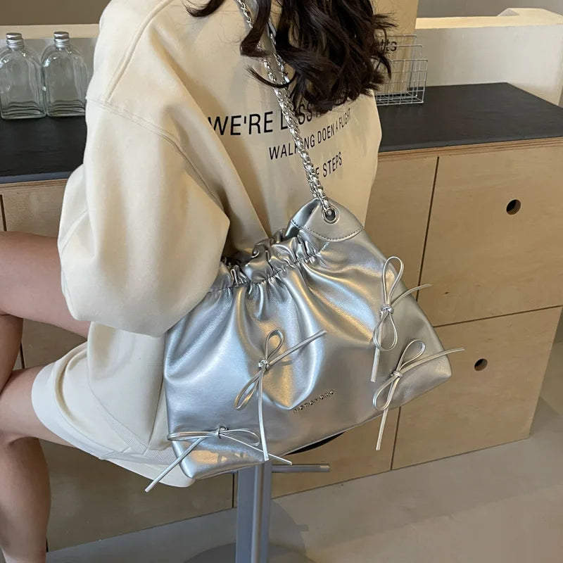 MQTIME - 2024 Summer New Ladies Handbag Fashion Simple Beige Pink Silver Pu Bucket Bags For Women Trendy Casual Shoulder Bag Crossbody