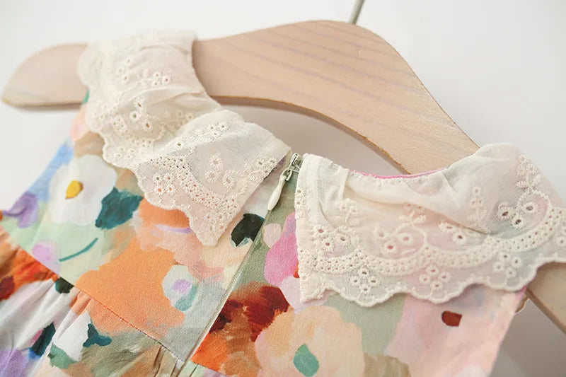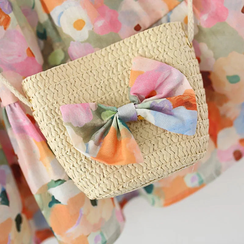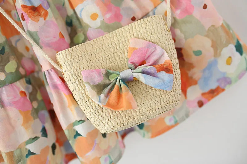 MQTIME - 2Piece Sets Summer Kids Clothes Korean Cute Doll Collar Sleeveless Cotton Princess Flower Girl Dresses+Bag Toddler Dress B034
