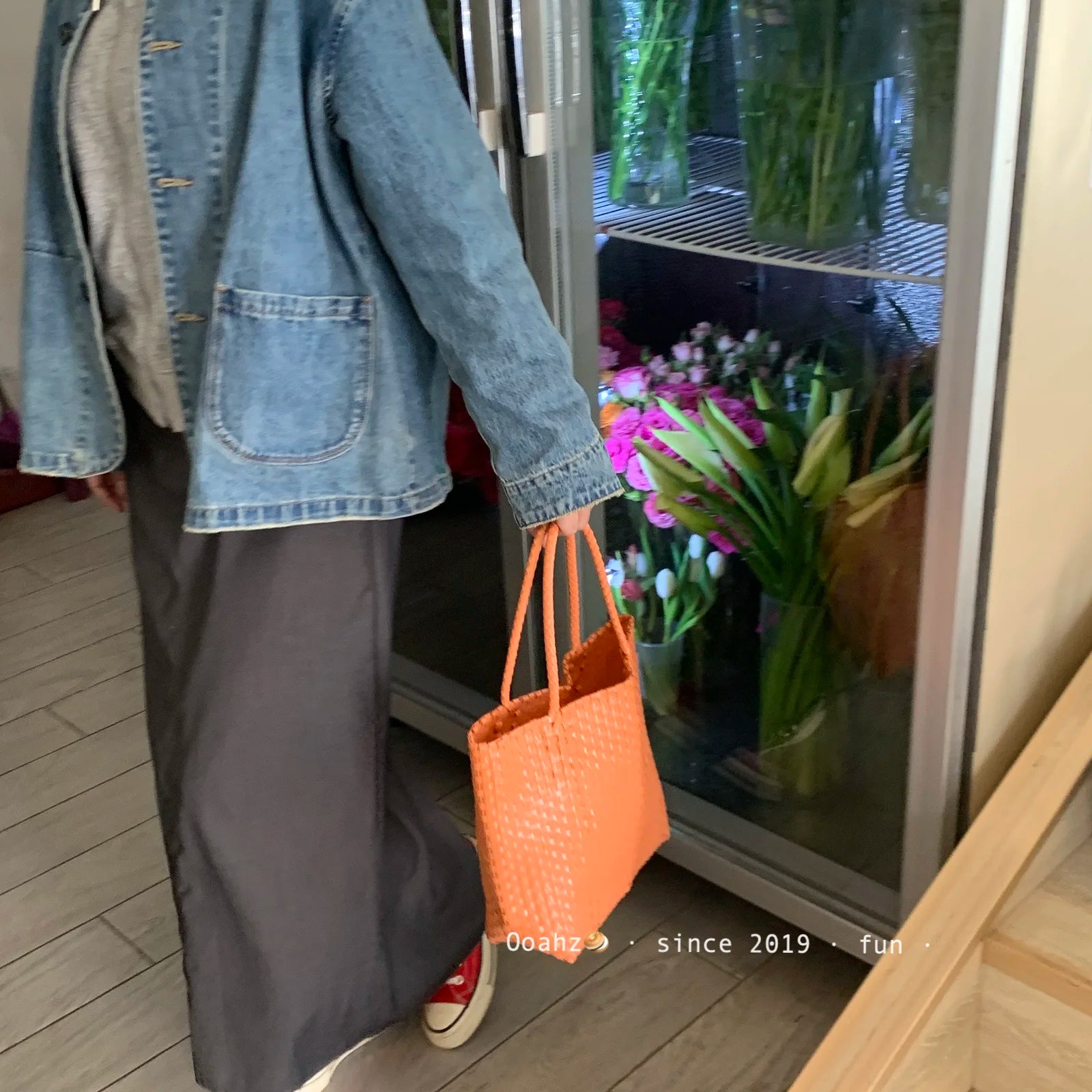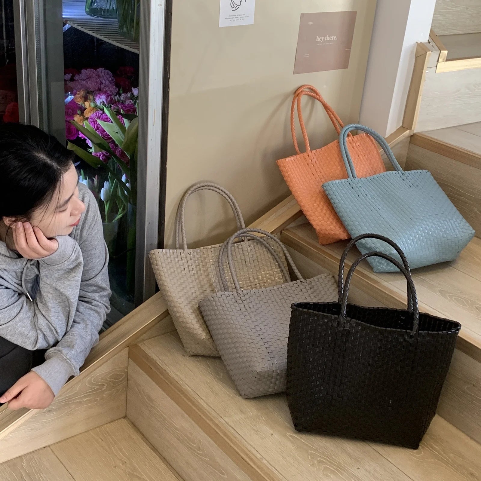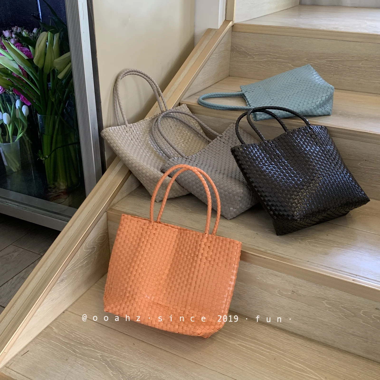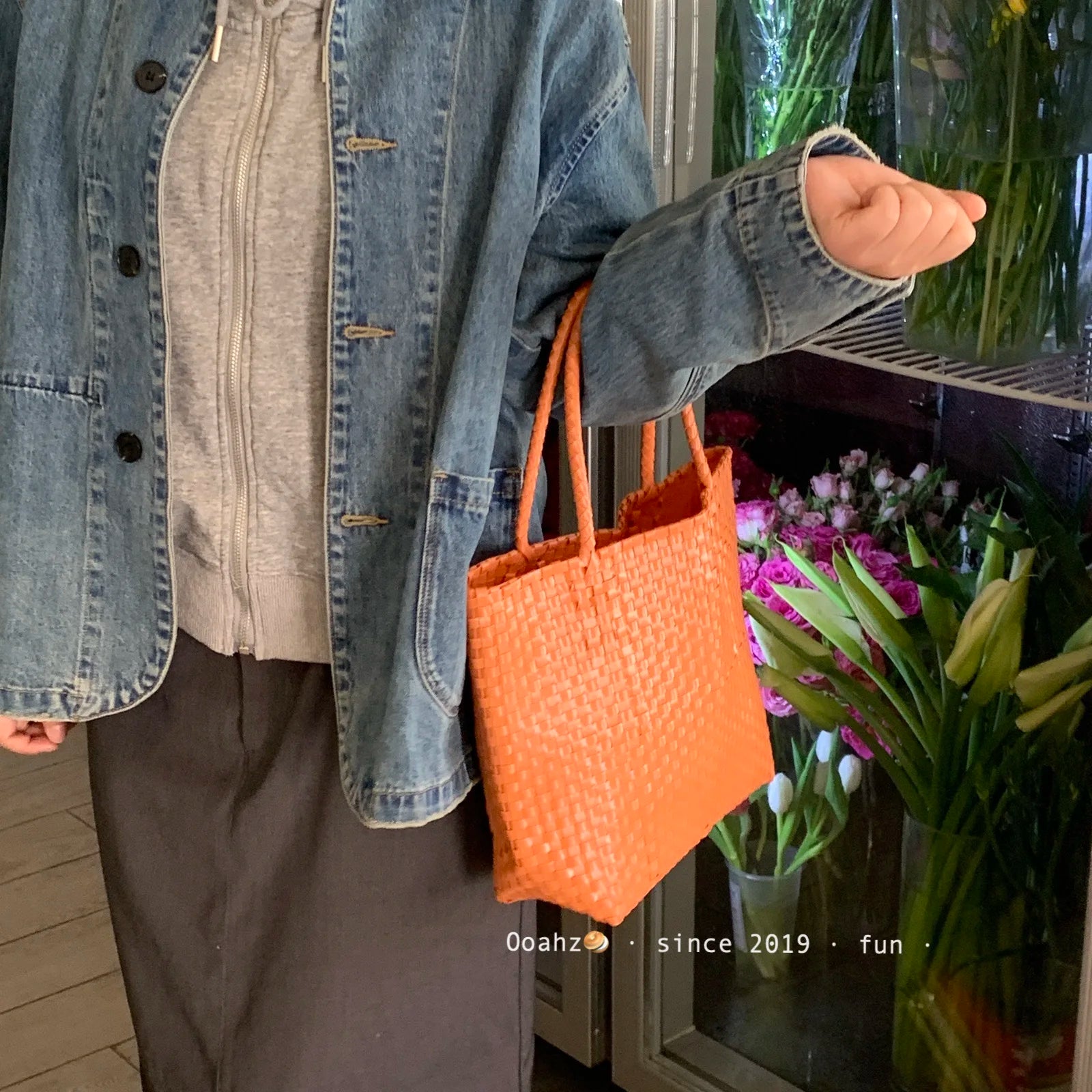 MQTIME - Hanrted Large Capaci Basket Bag Orange Jasmine Spring Summer Handheld Beach St Woven Bag Korean Sle oulder Bag