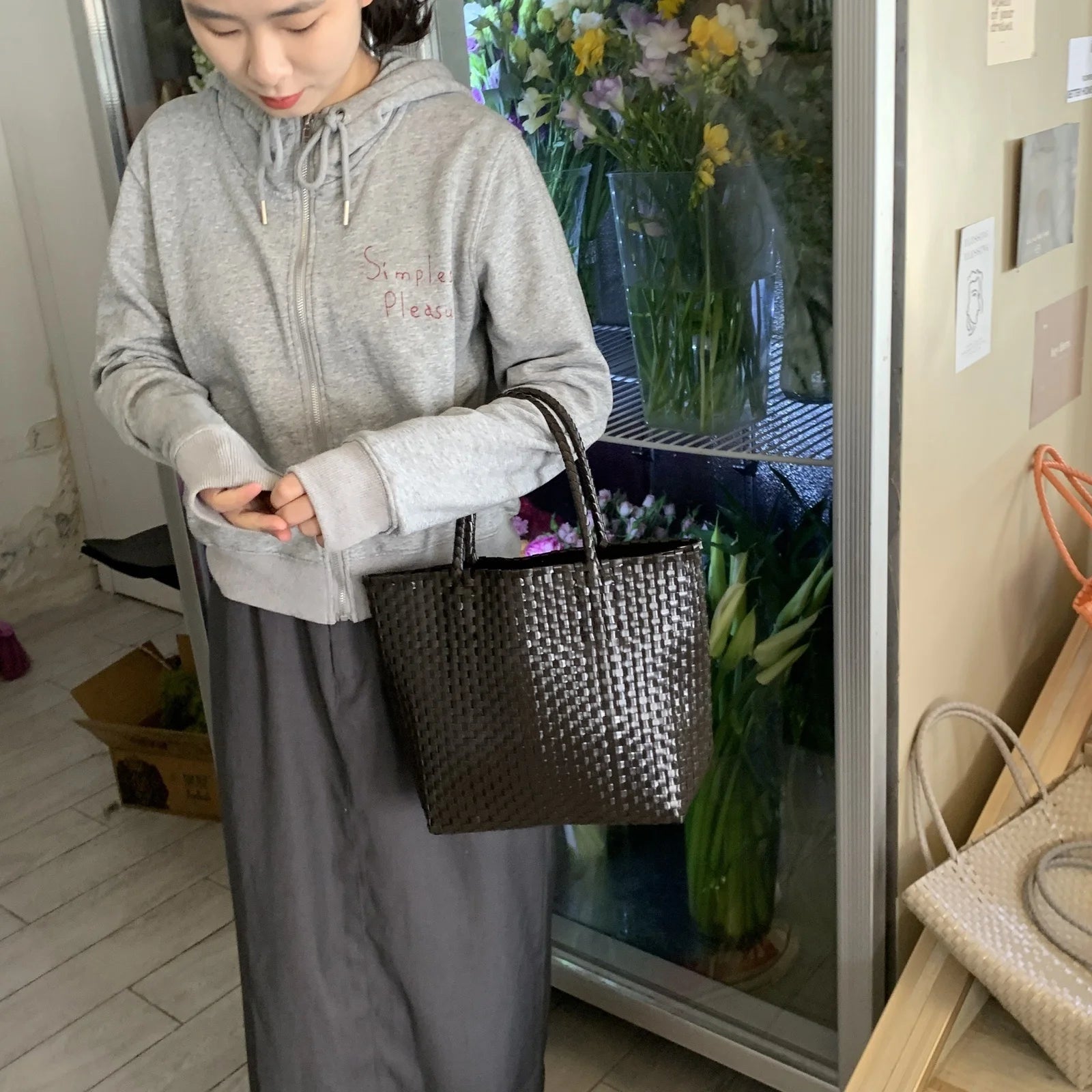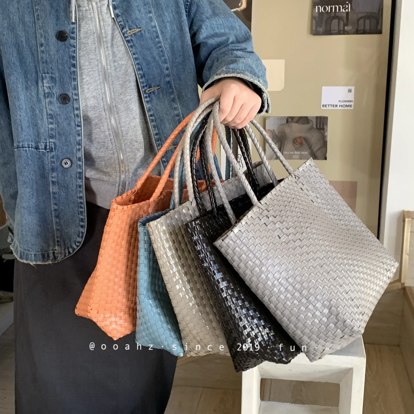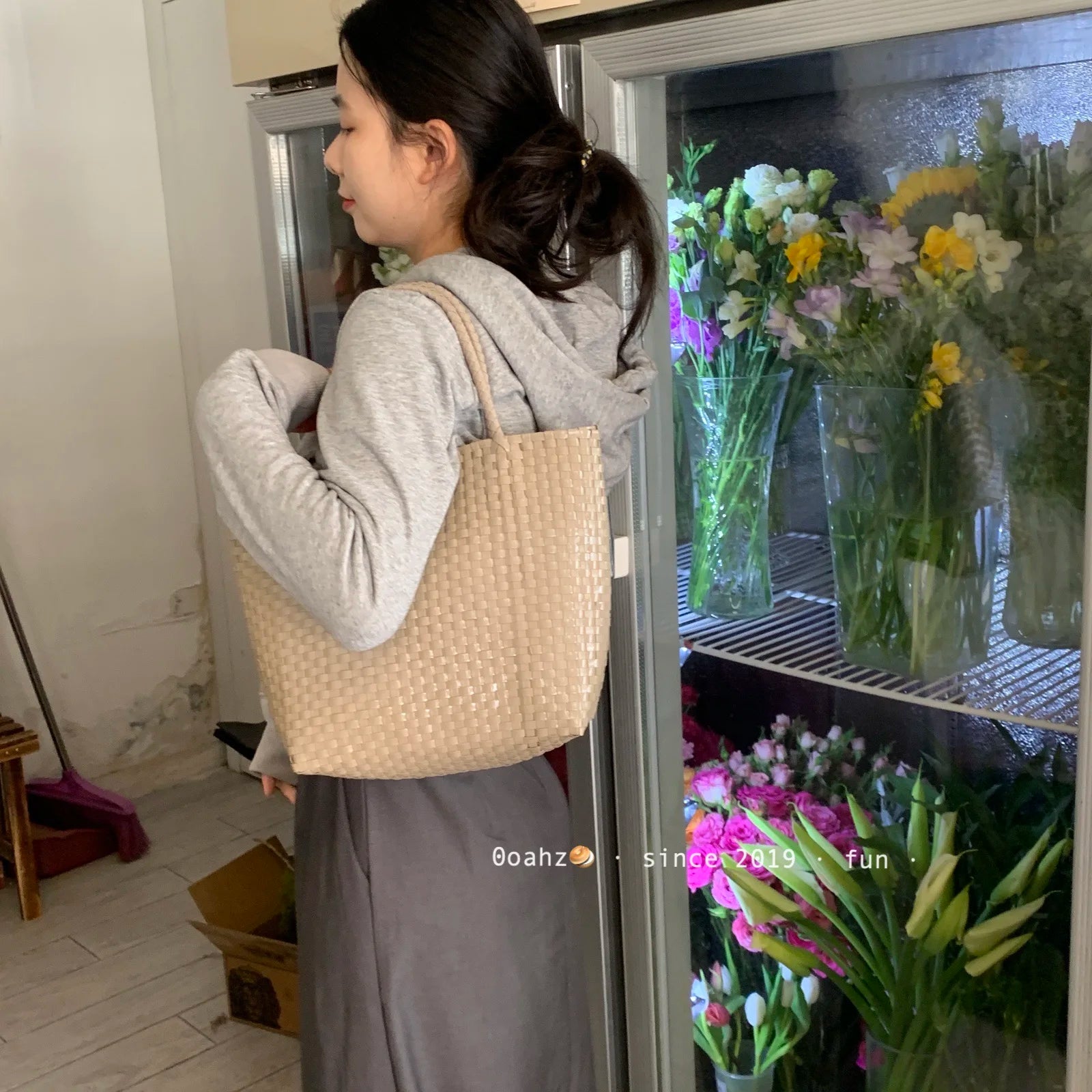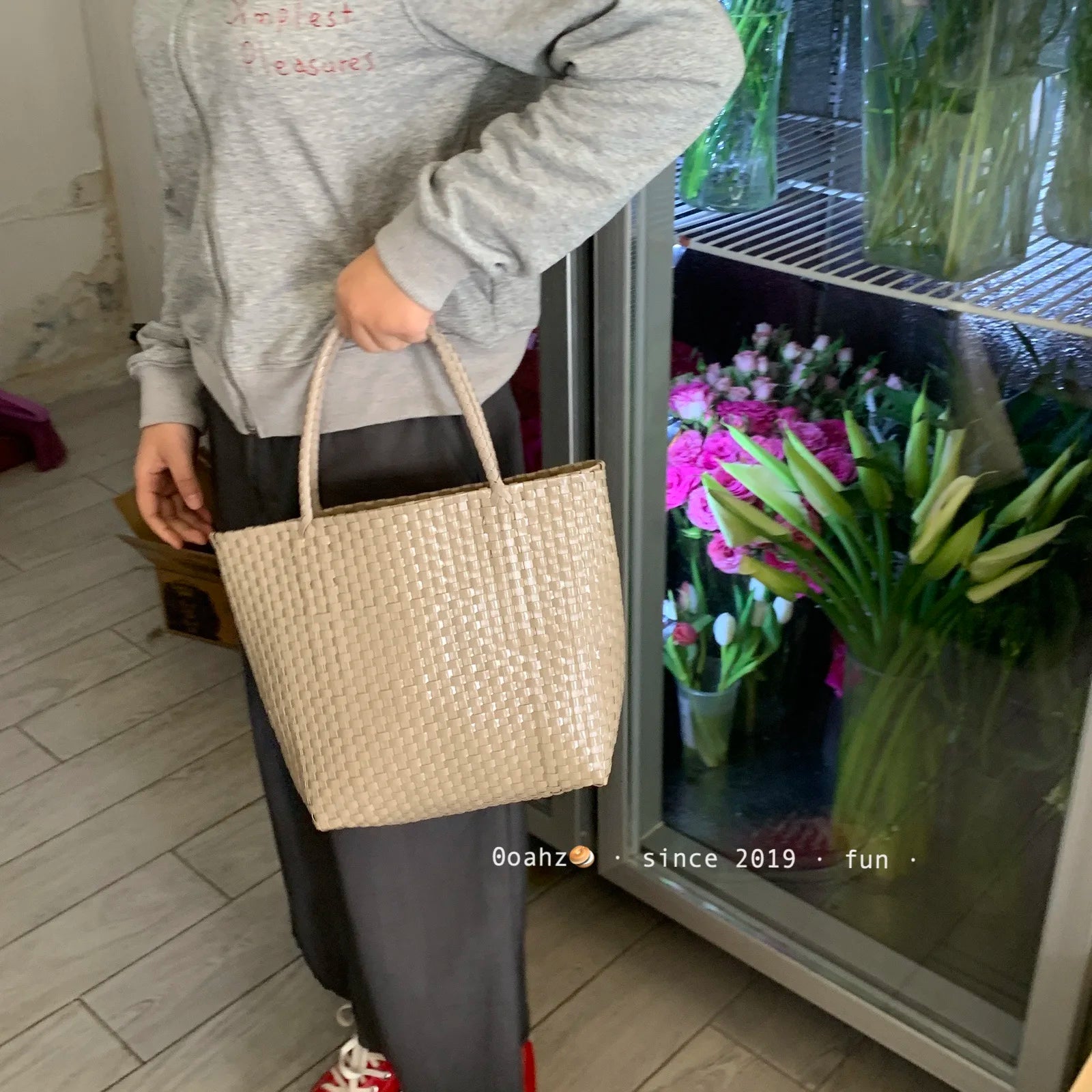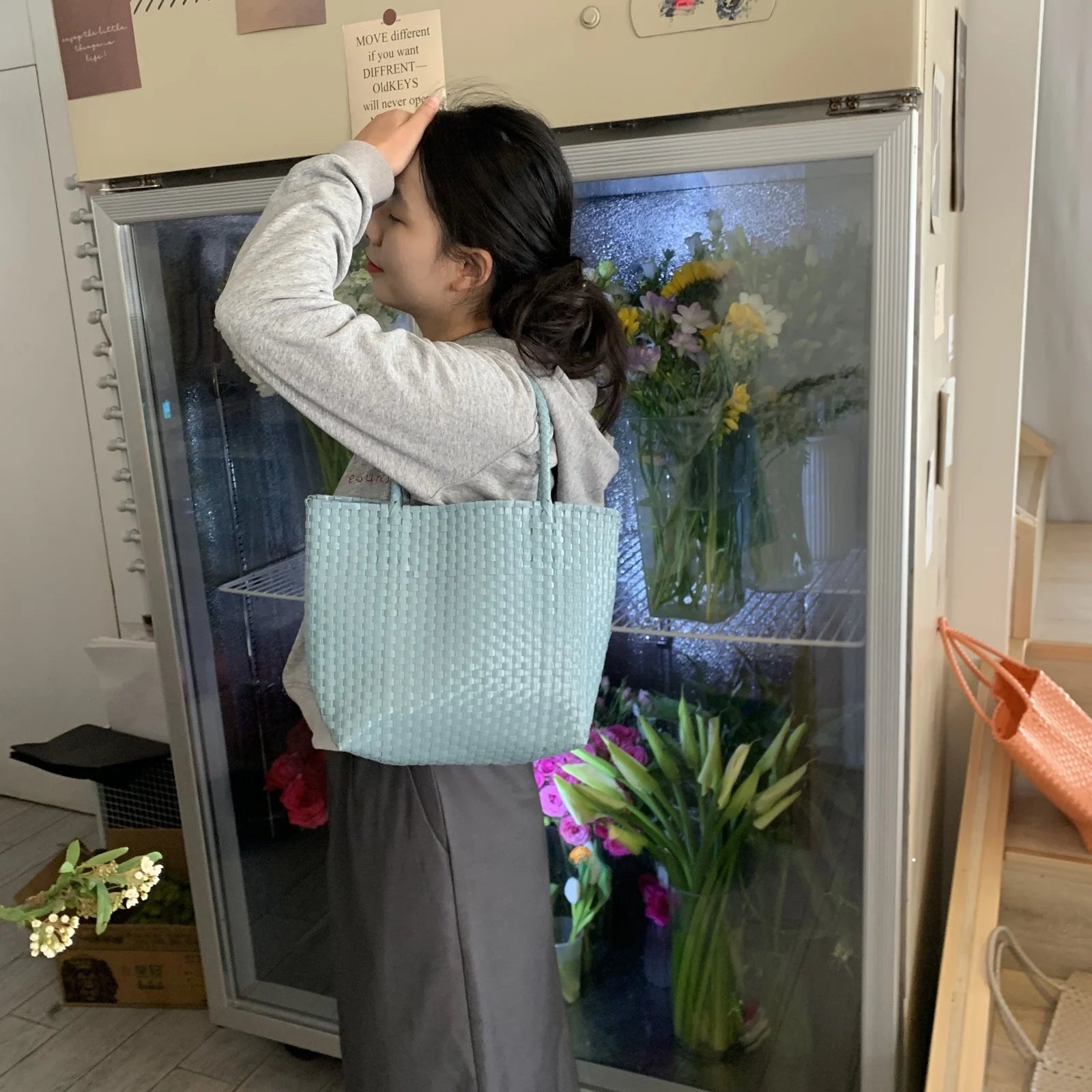 MQTIME - Hanrted Large Capaci Basket Bag Orange Jasmine Spring Summer Handheld Beach St Woven Bag Korean Sle oulder Bag