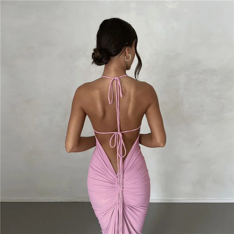 MQTIME - INS European and American style summer new women's clothing fashion suspender sexy backless slim bag buttocks temperament dress