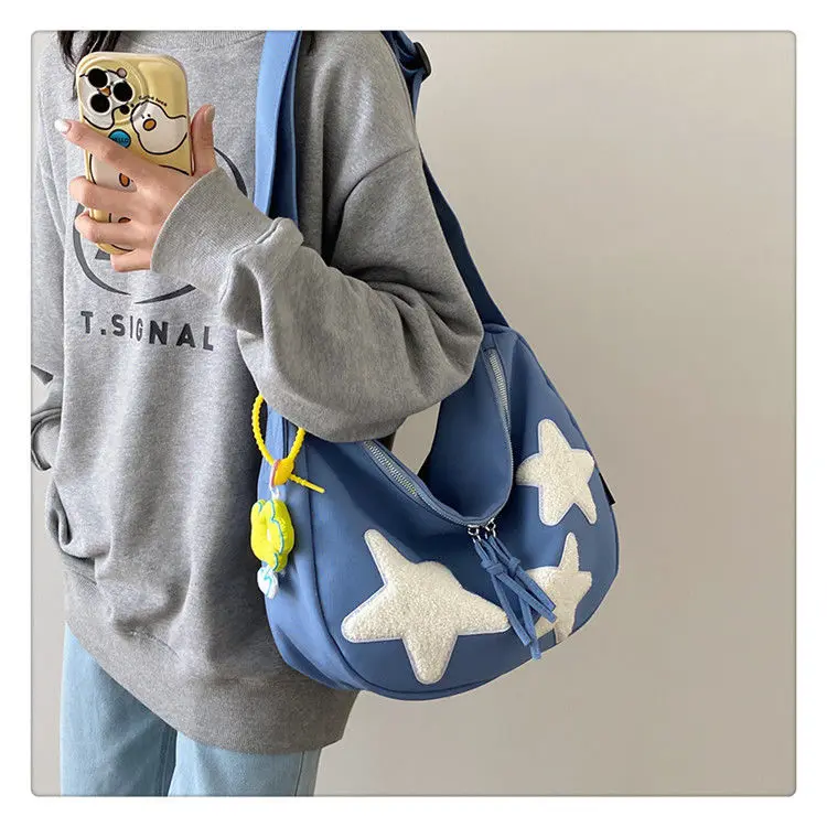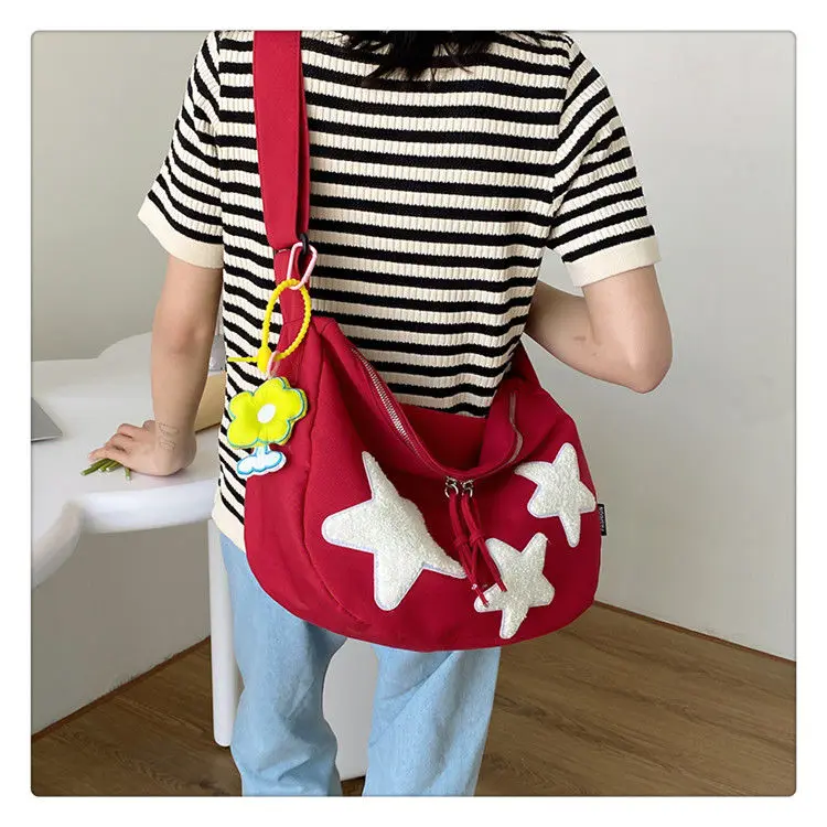 MQTIME - Star Y2k Messenger Bag Women New Harajuku Cute Canvas Casual Tote Crossbody Bag Ladies Red Bolsa Mujer Aesthetic