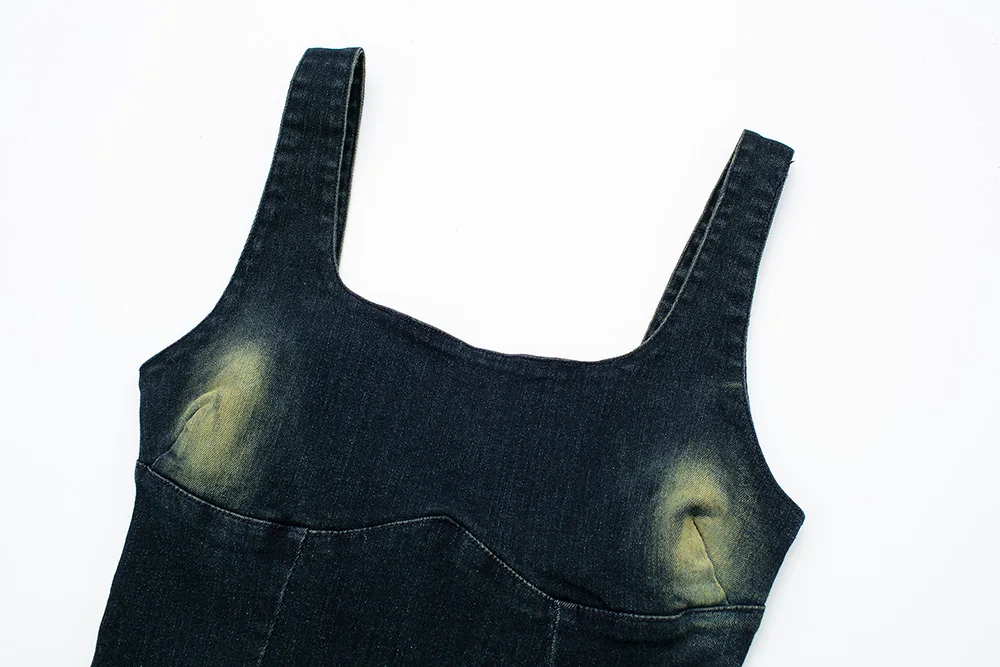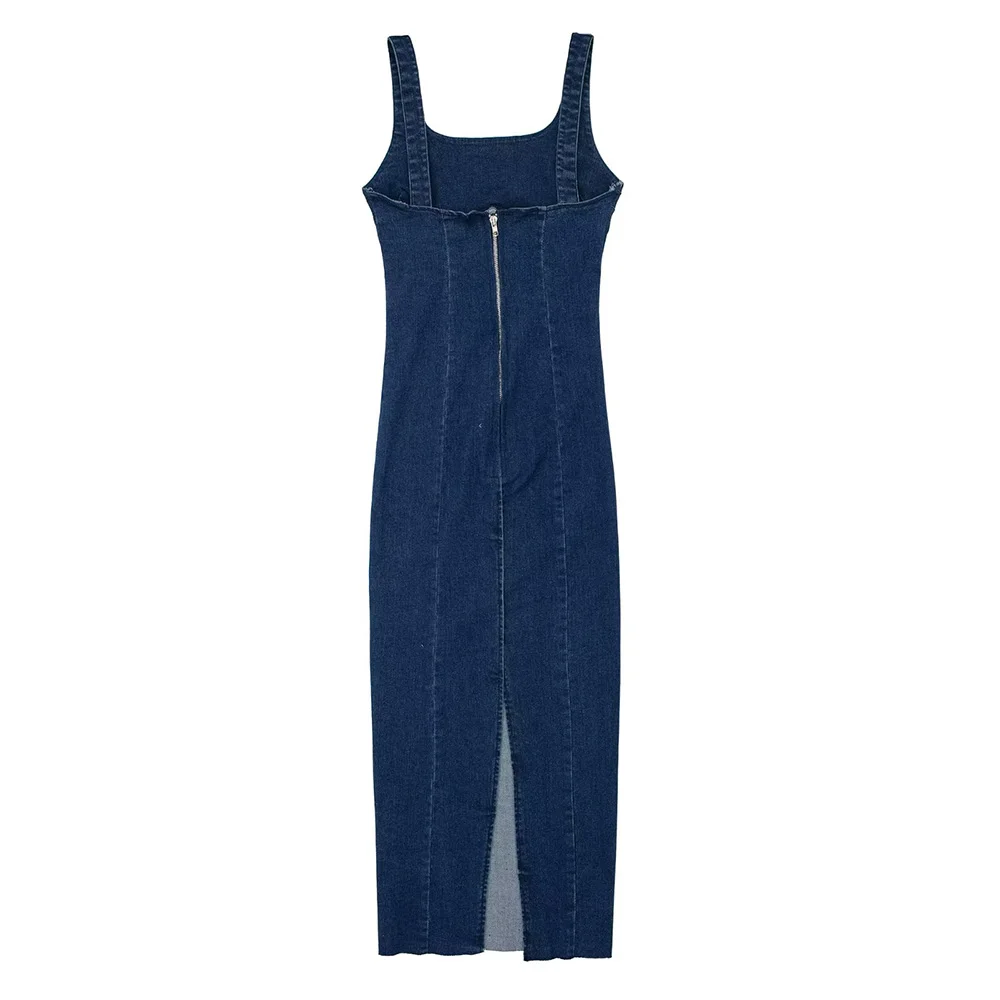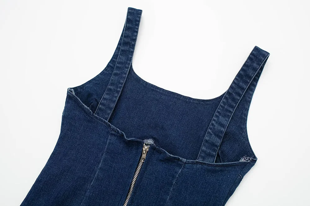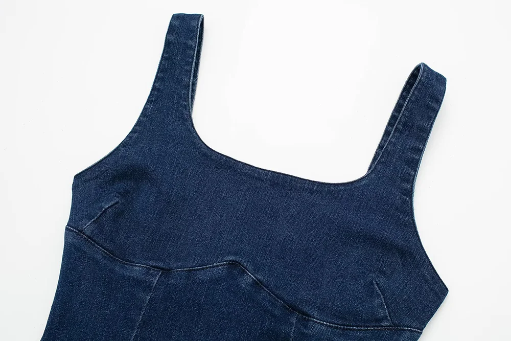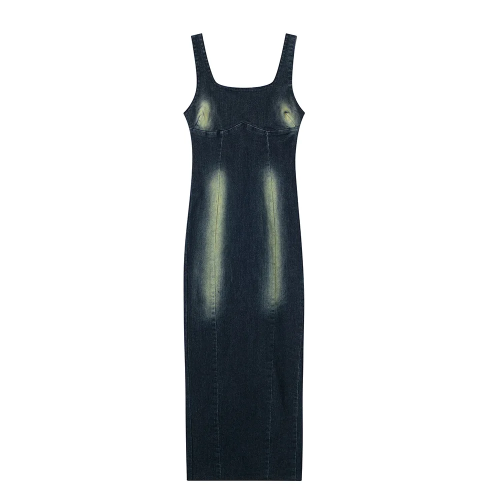 Mqtime Dresses For Women Fashion Clothes Wide Strap Sleeveless Solid Denim Dress Summer Party Night Club Sexy Bodycon Long Dress