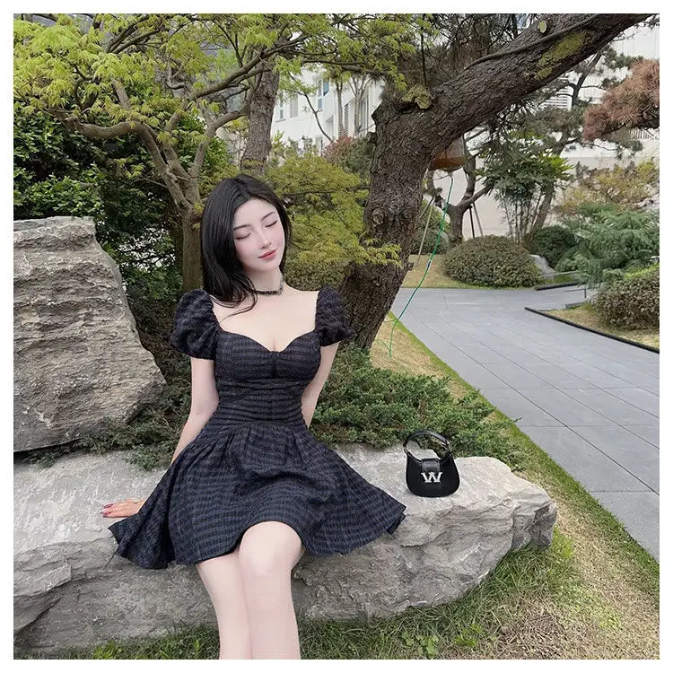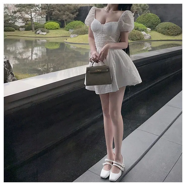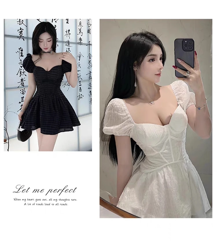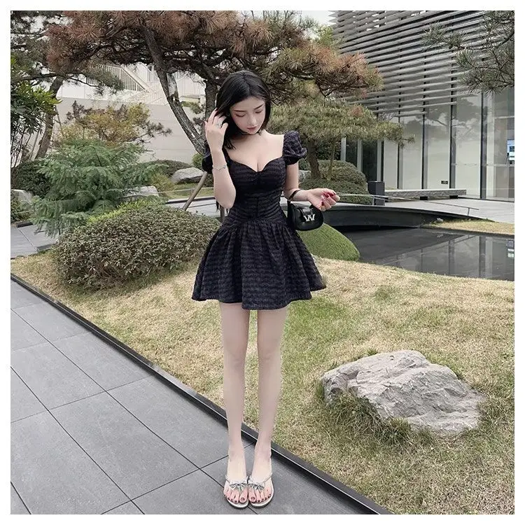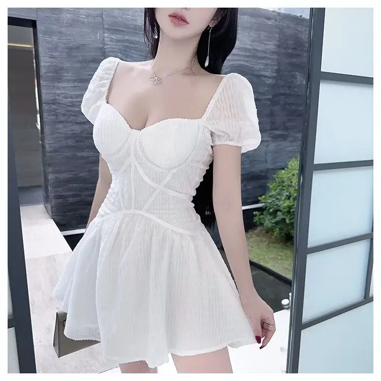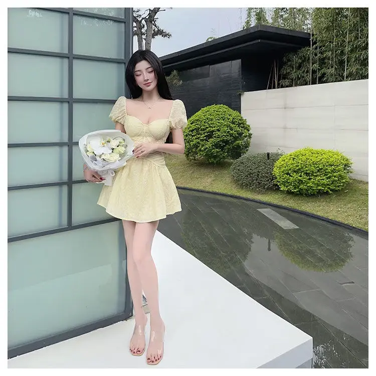 MQTIME - Mini Sweet Dress Yellow Sexy V-neck Bodycon Dresses For Women Summer Korean Elegant Mini Club Party Dress Evening Outfits