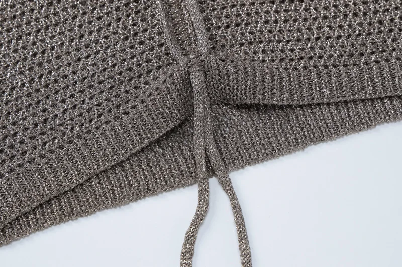 MQTIME - Women Sexy Crochet Knitted Bodycon Mini Dress Cross Hollow Out Strapless Lace Up Halter Backless Stretch Holiday Outfit Clubwear