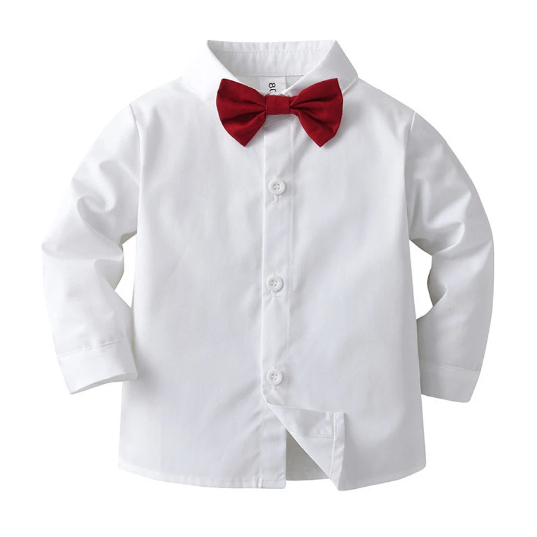 MQTIME - 1 2 3 4 5 6 7Y Boy Christmas Outfit White Shirt+Star Printed Strap Set Children Autumn Formal Gentleman Wedding Flower Costume