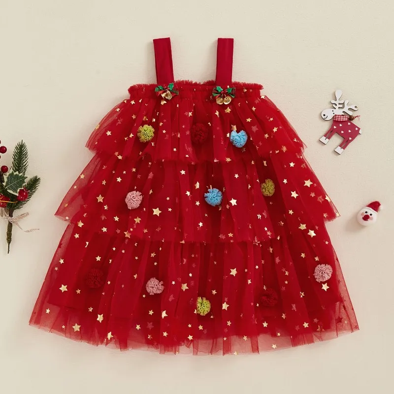 MQTIME  -  Christmas Baby Girls Dresses Princess Kids Party Clothes for Girl Star Print Sleeveless Layered Tulle Dress with Ball