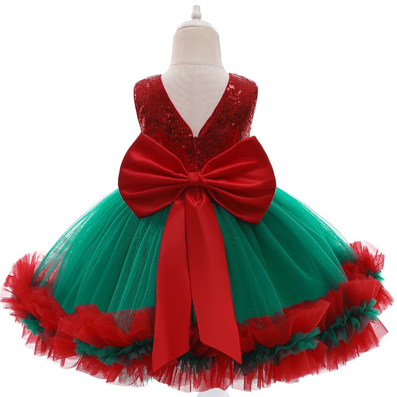 MQTIME  -  New Years Baby Girls' Christmas Dress Elegant Sequins Big Bow Princess Party Wedding Dresses Lace Tutu Children Kids Clothing