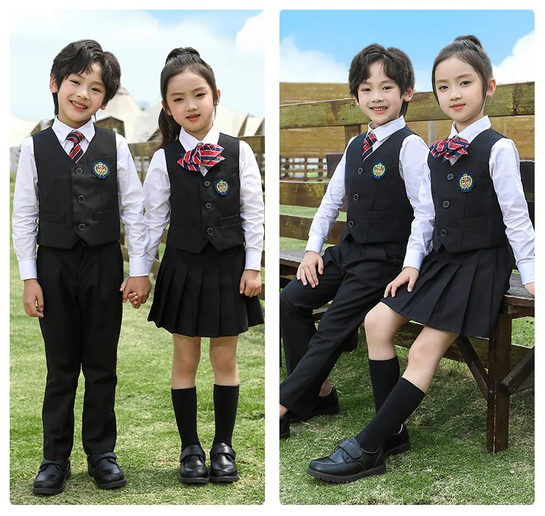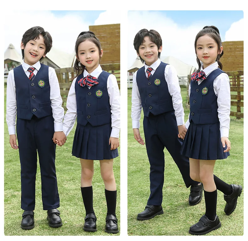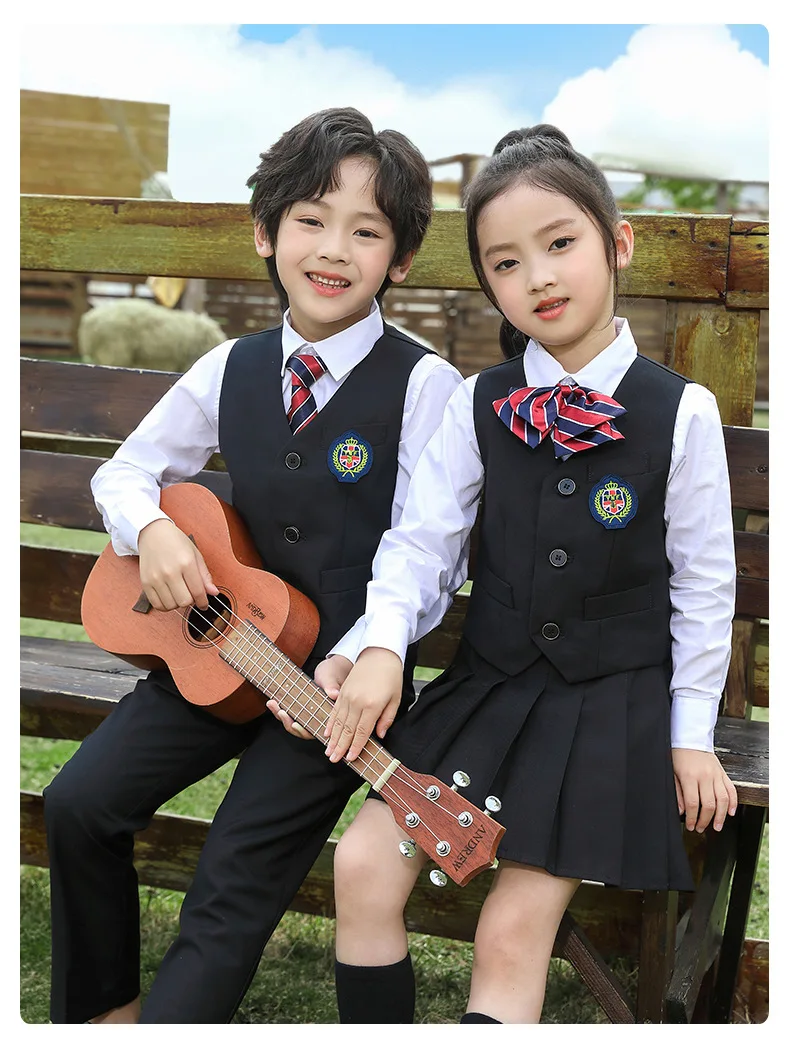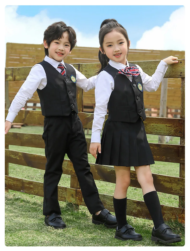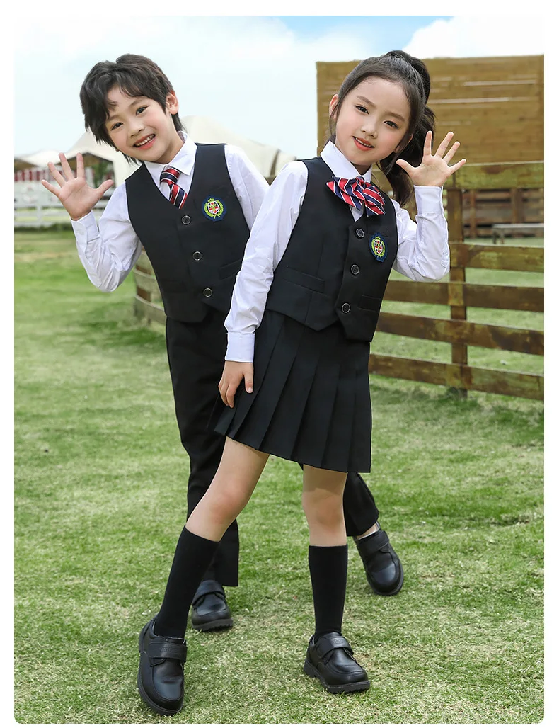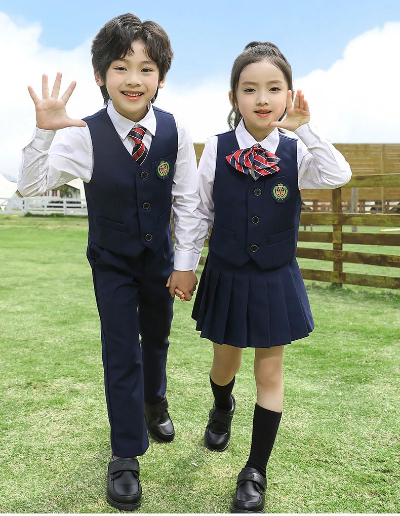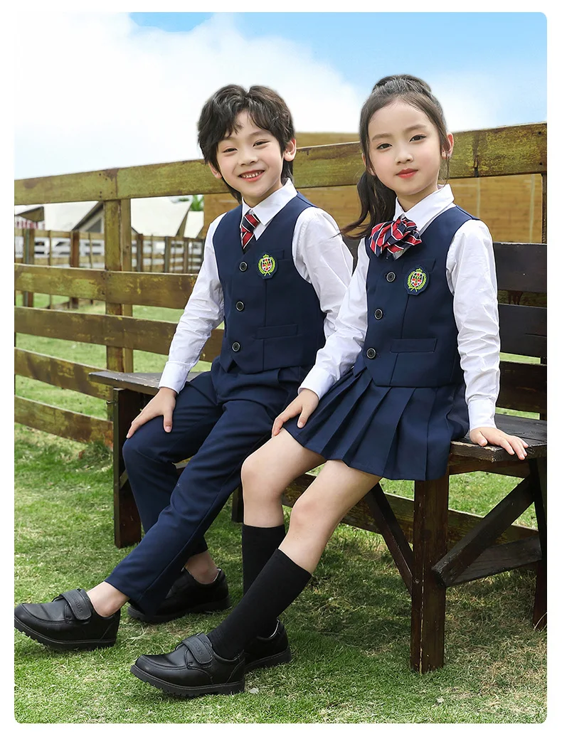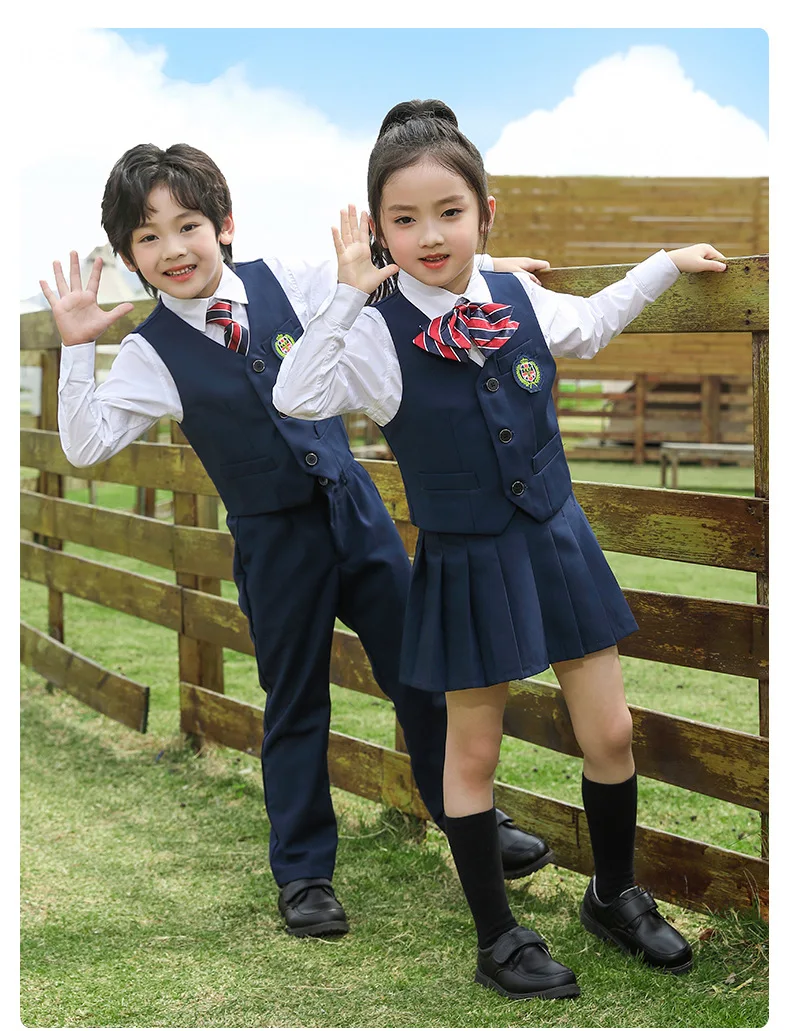 Kid Korean Japanese School Uniform for Boy Girl White Shirt Navy Skirt Pants Waistcoat Vest Tie Clothes Set Student Outfit Suit