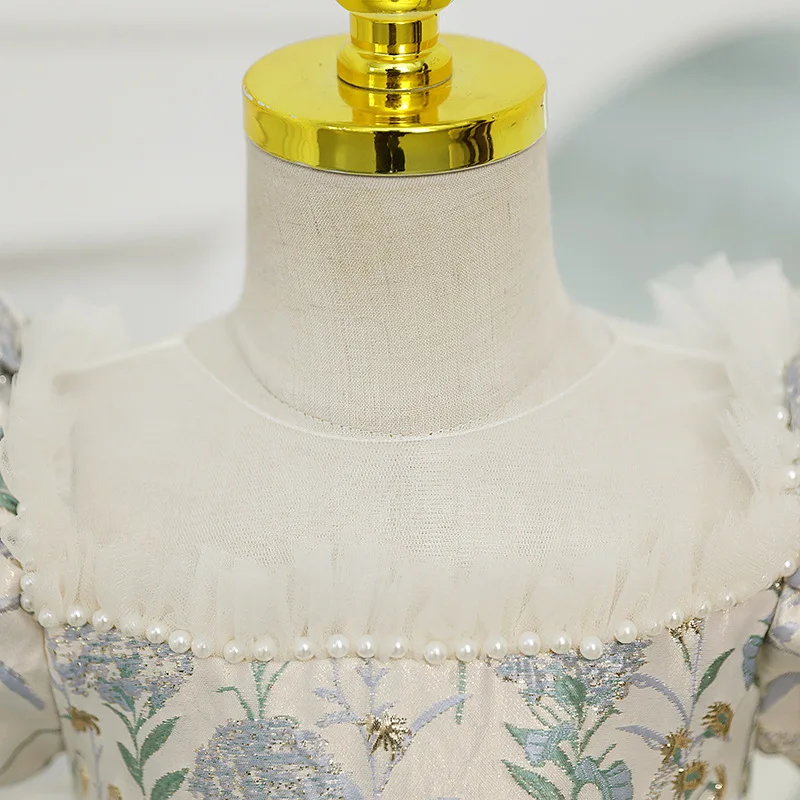 MQTIME - Luxury Embroidery Flower Baby Girl Dress For 1st Birthday Wedding Kids Elegant Evening Clothes Spanish Ceremony Prom 1-5 Years