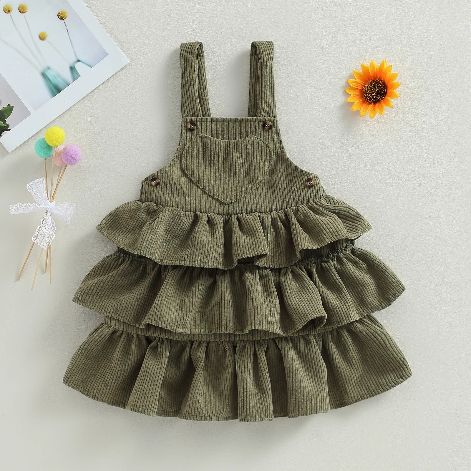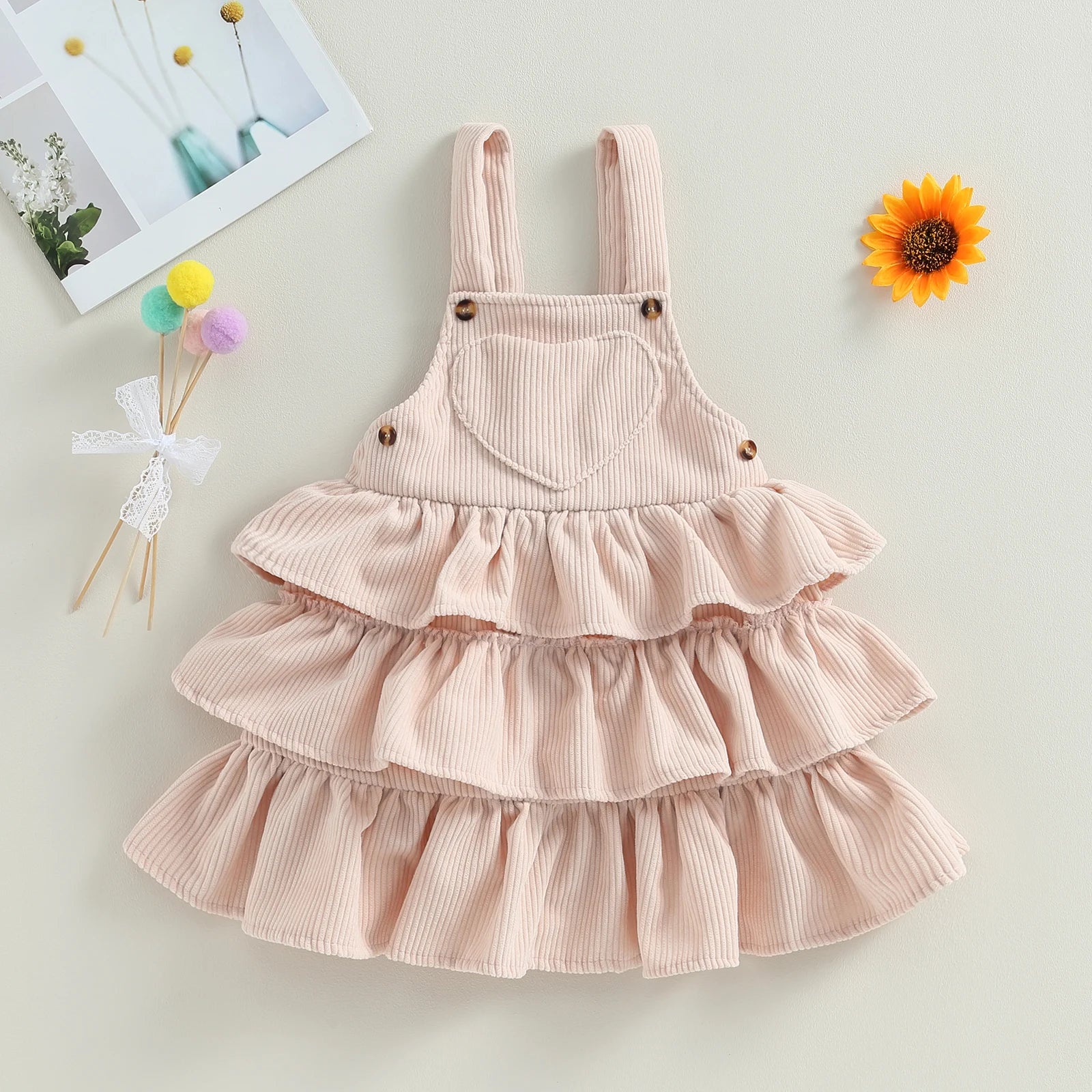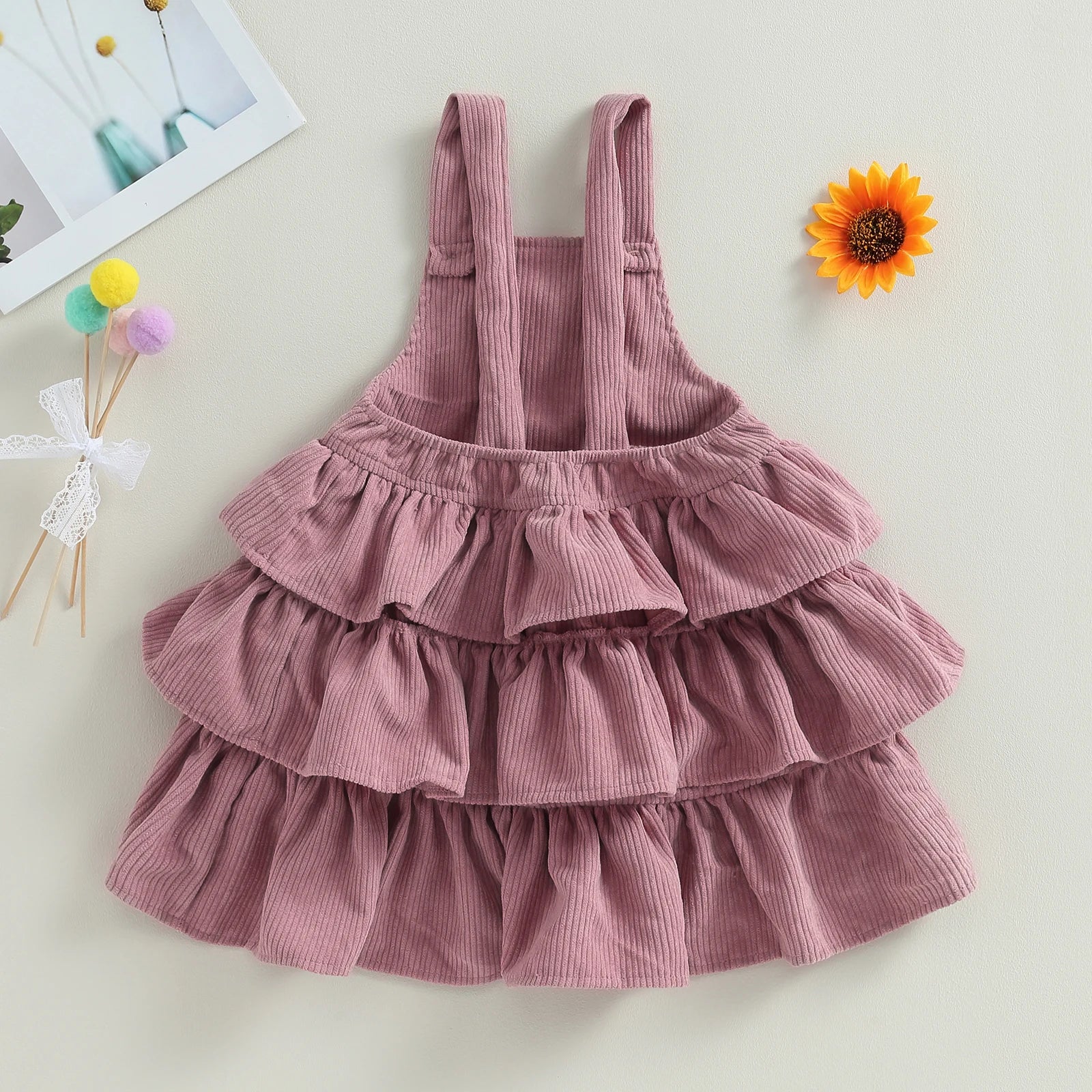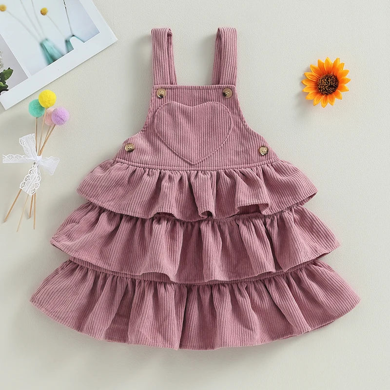 MQTIME  -  0-6Y Toddler Kids Girl Overall Dress 4 Colors Solid Sleeveless Layered Ruffle Suspender Sundress
