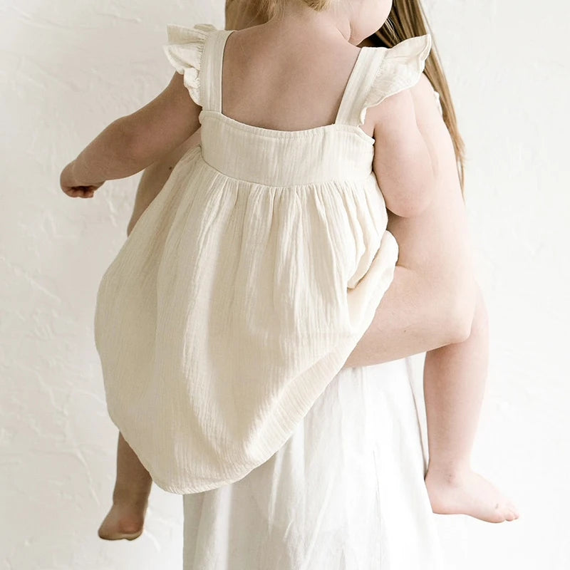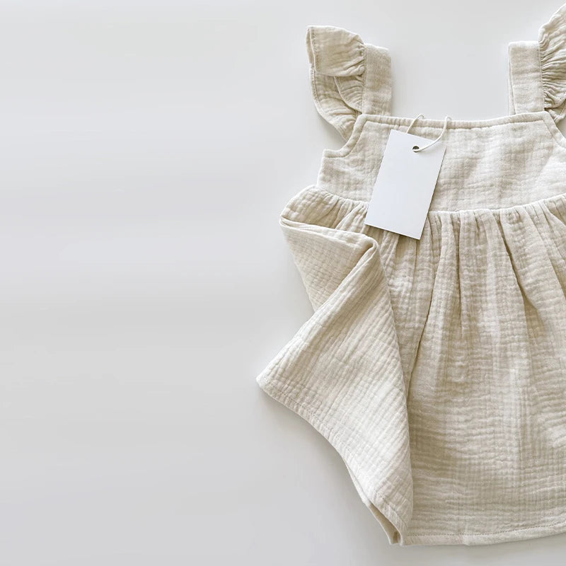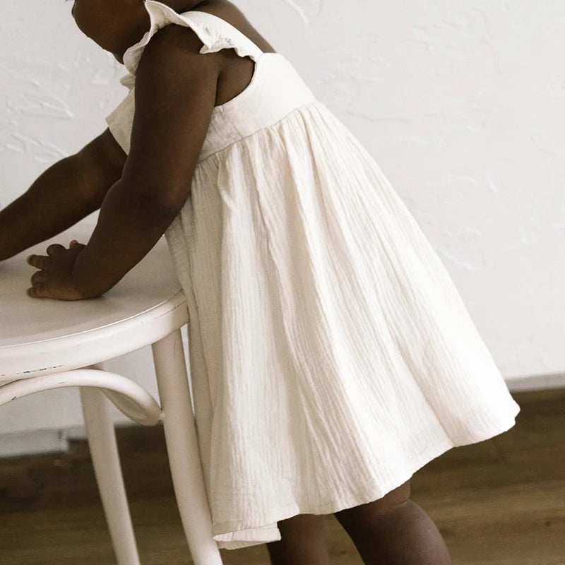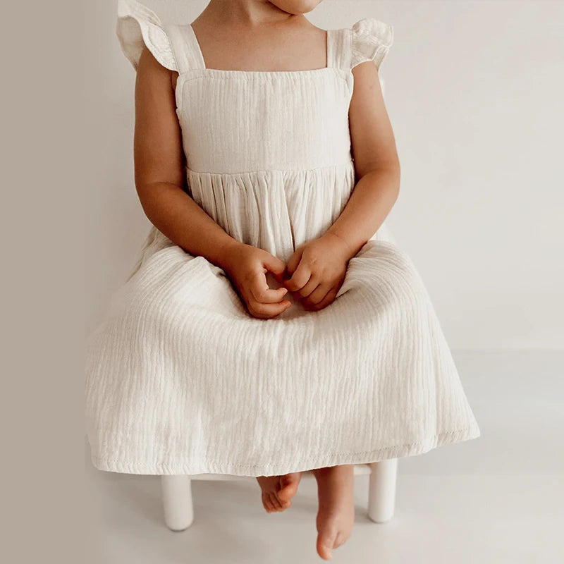 MQTIME - 100%Cotton Muslin Girls White Dress With Lined Summer New Retro Baby Girl Sleeveless Ruffled Straps Flowy Princess Dresses TZ385