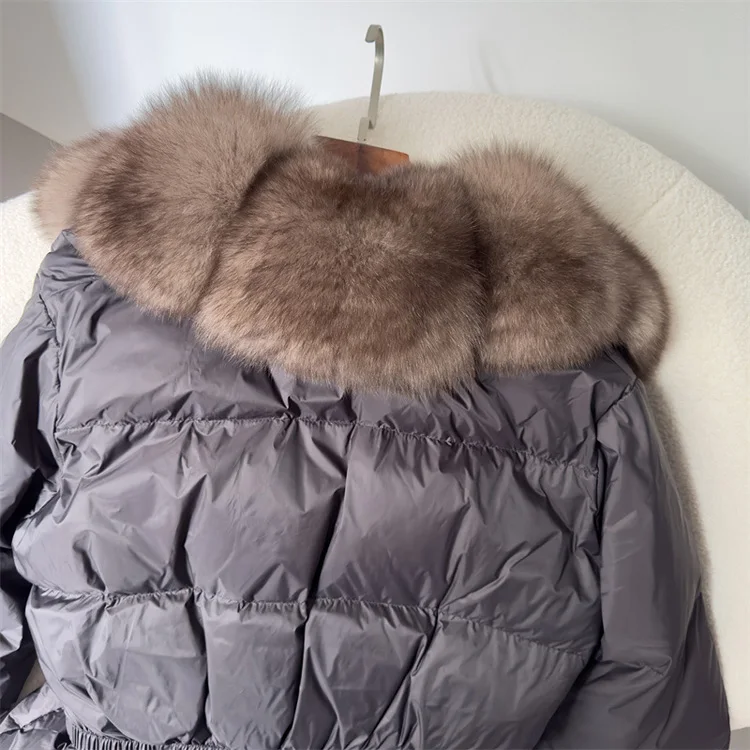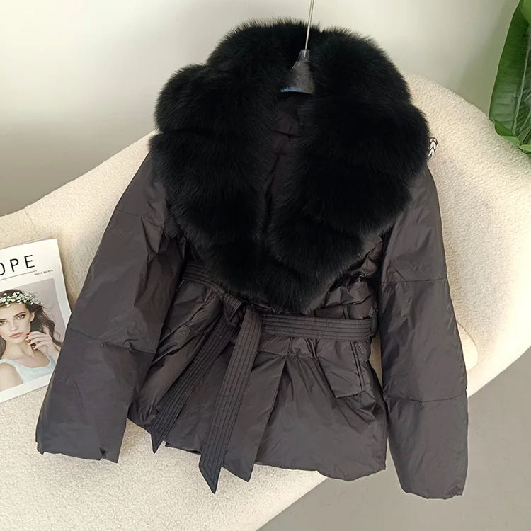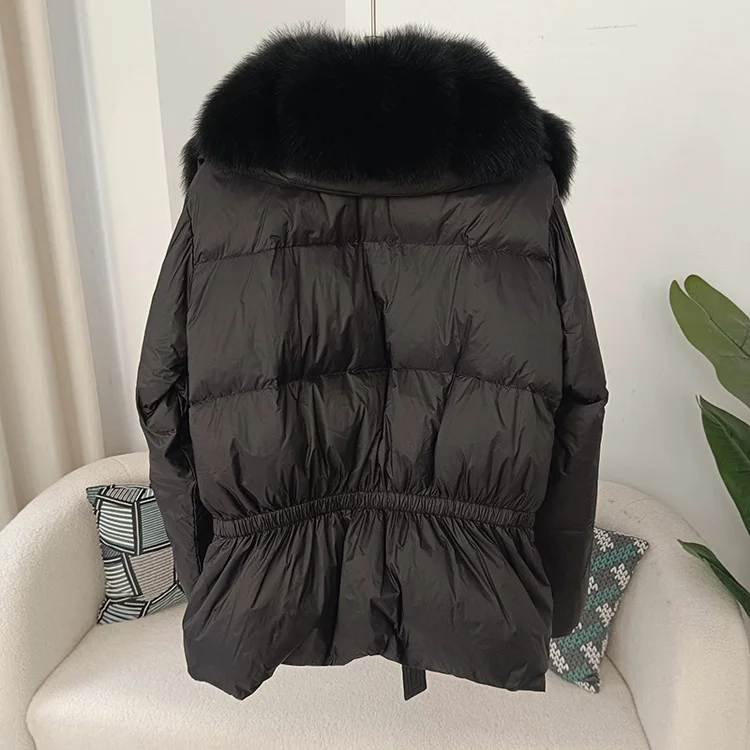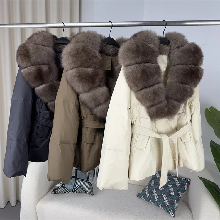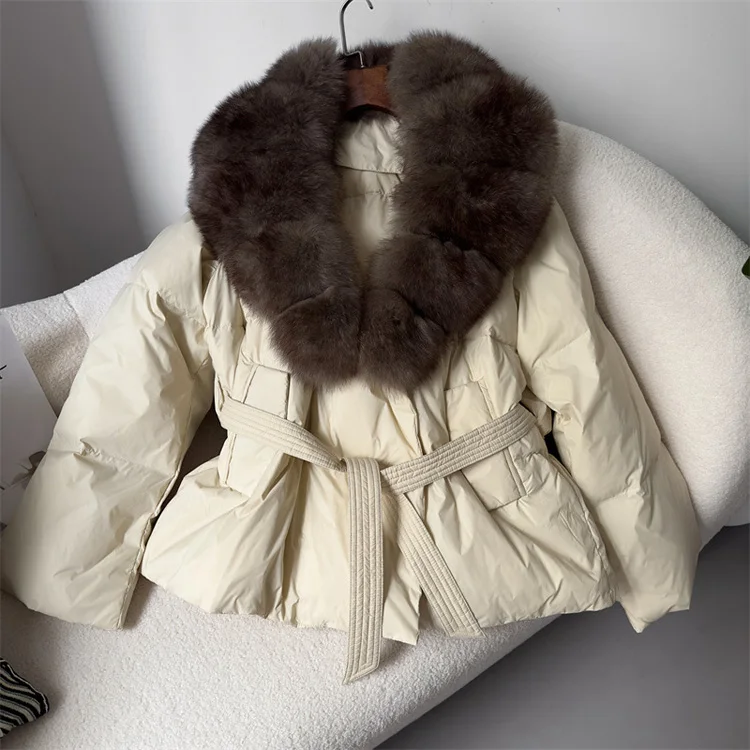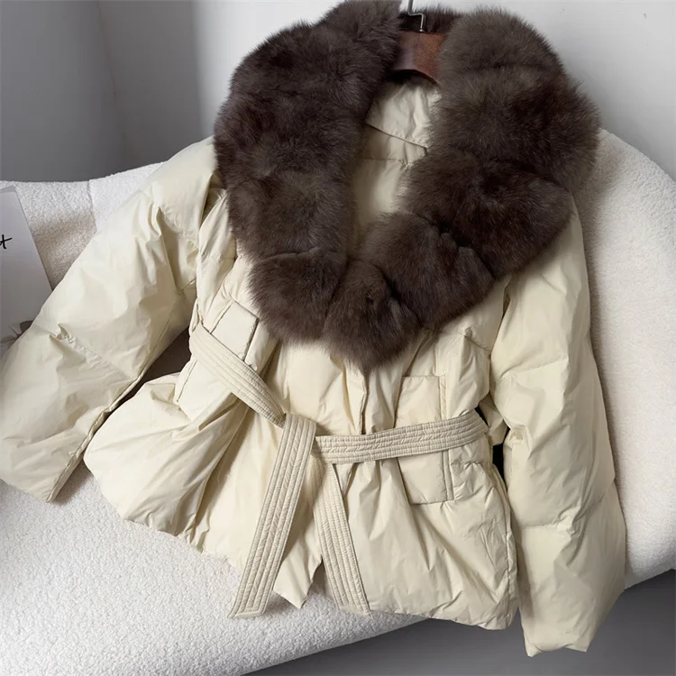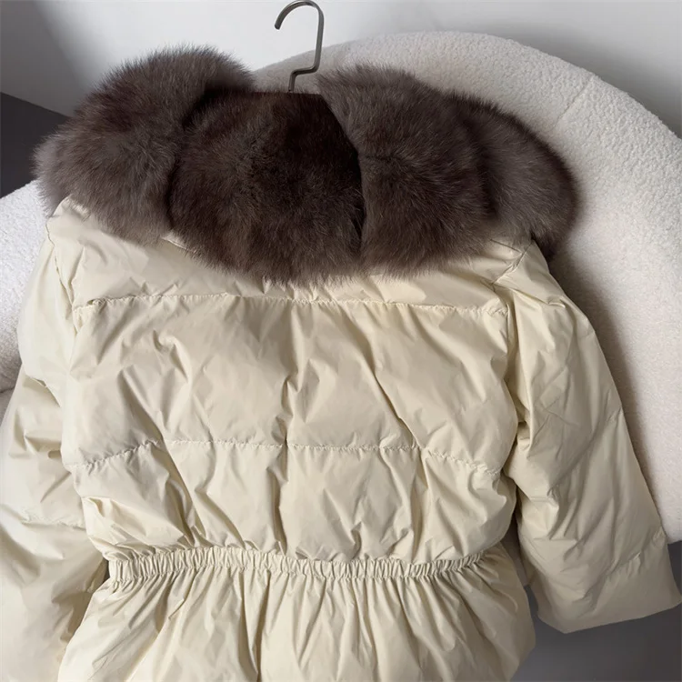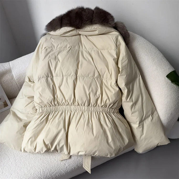 MQTIME - 2024 Autumn Winter Women 90% White Duck Down Jacket Fox Fur Coat Parkas Feather Short Puffer Coat
