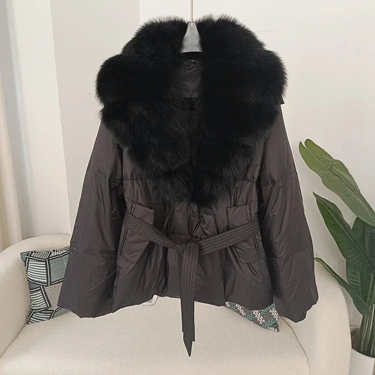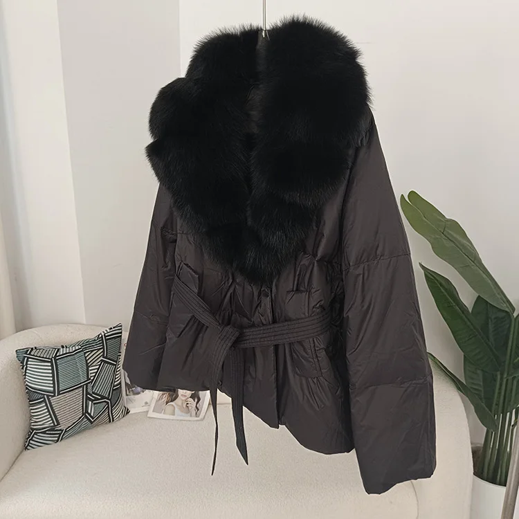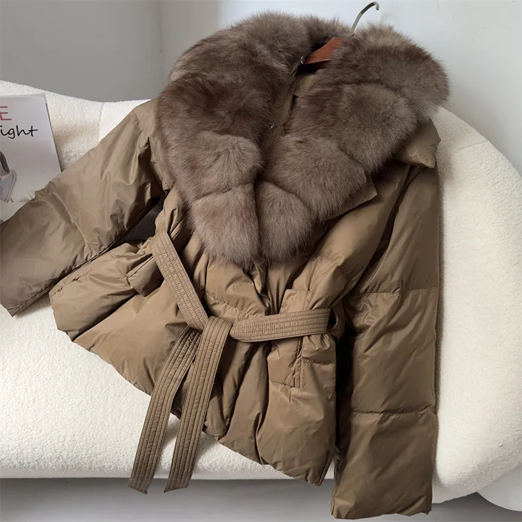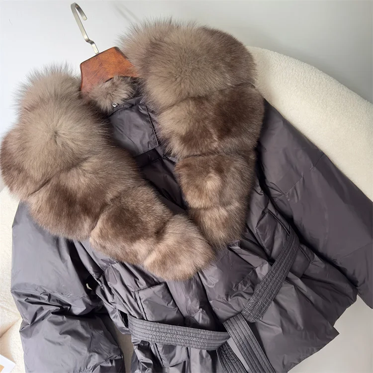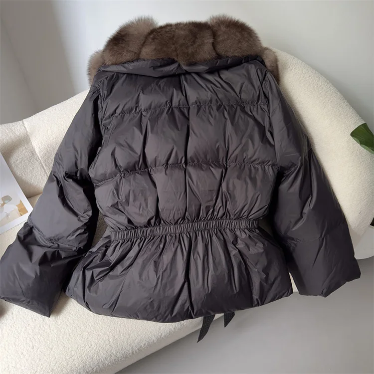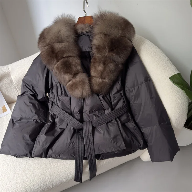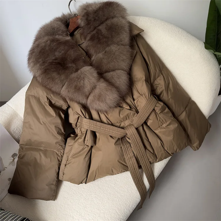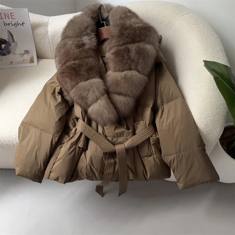 MQTIME - 2024 Autumn Winter Women 90% White Duck Down Jacket Fox Fur Coat Parkas Feather Short Puffer Coat