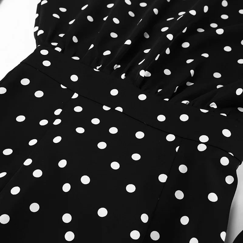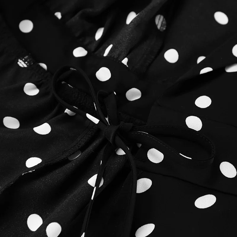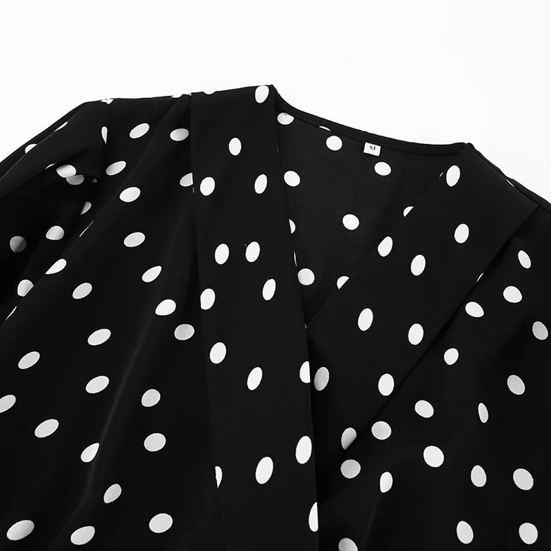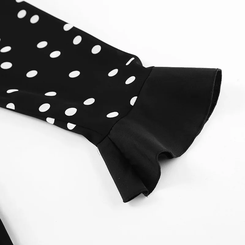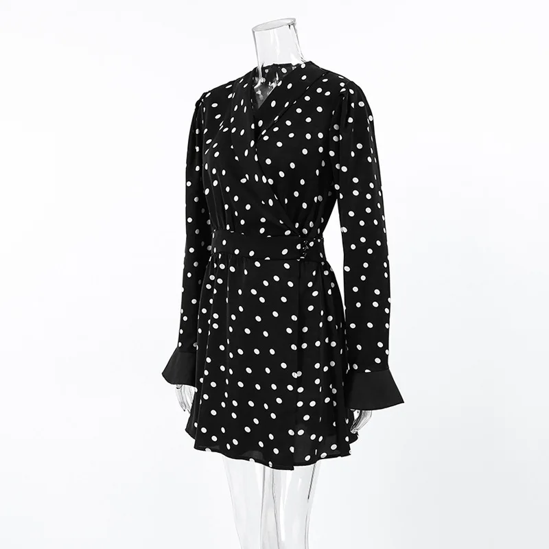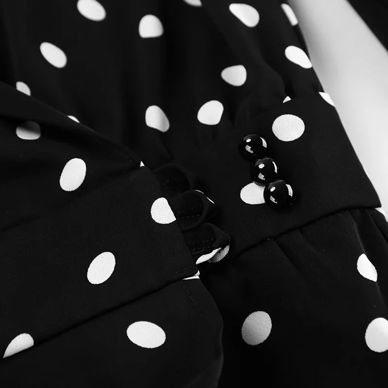 MQTIME - 2024 Autumn Winter Women Elegant Polka Dot Mini Dress V-neck Black Long Sleeve Flare Mini Dress For Women
