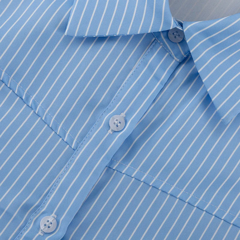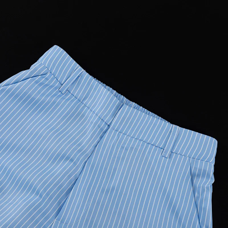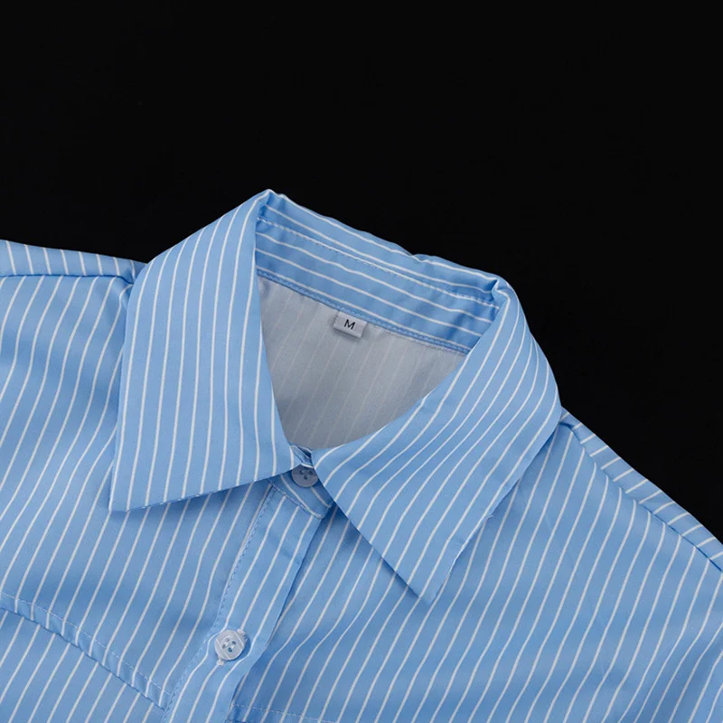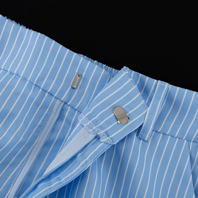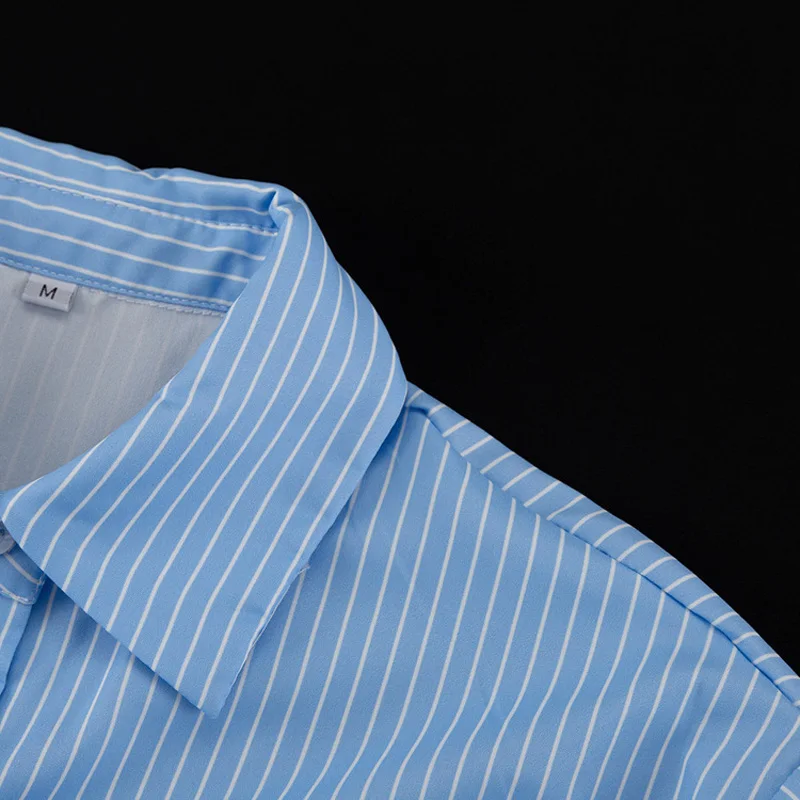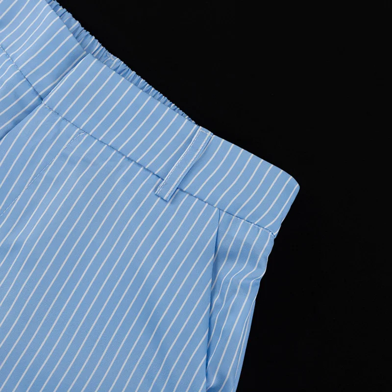 MQTIME - 2024 Women Autumn Winter Striped Pant Set 2 Two Piece Blue Outfits Matching Shirt Suit Set For Women