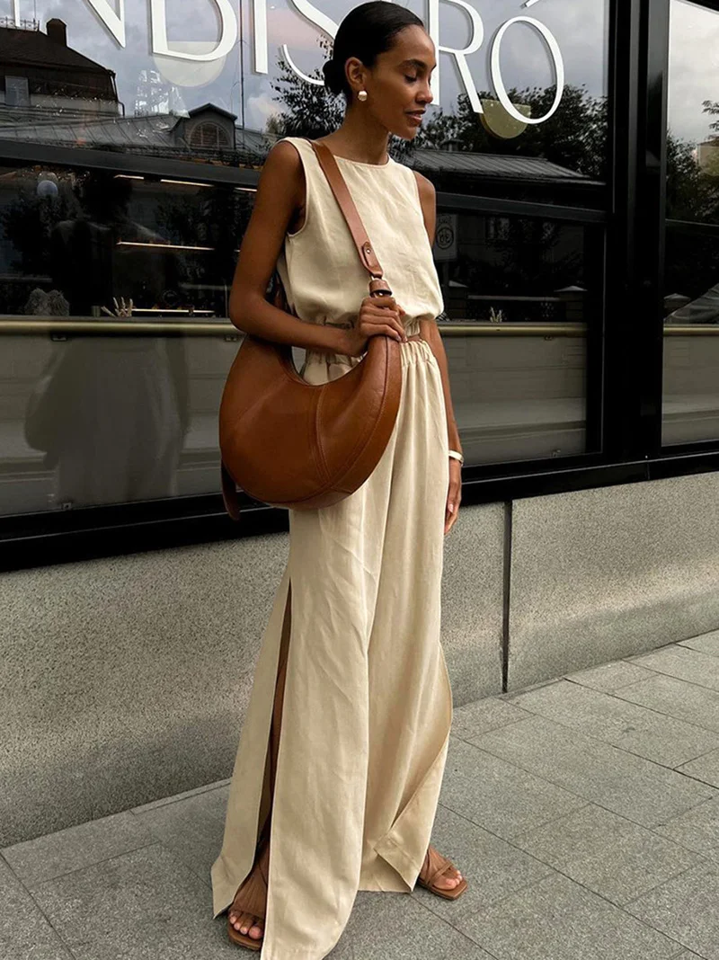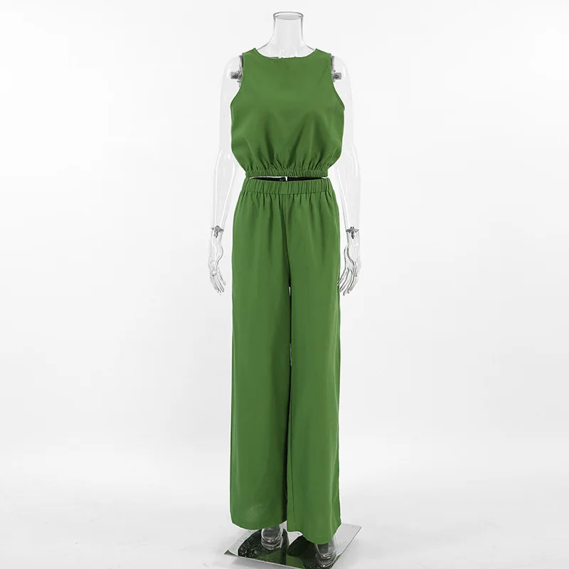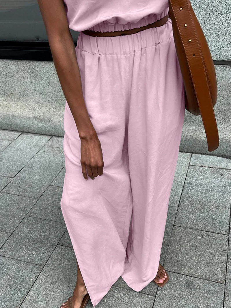 MQTIME - 2024 Women Spring Summer Linen Pant Set Solid Beach Outfits 2 Two Piece Matching Suit Set For Women