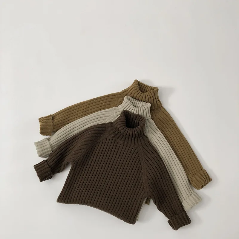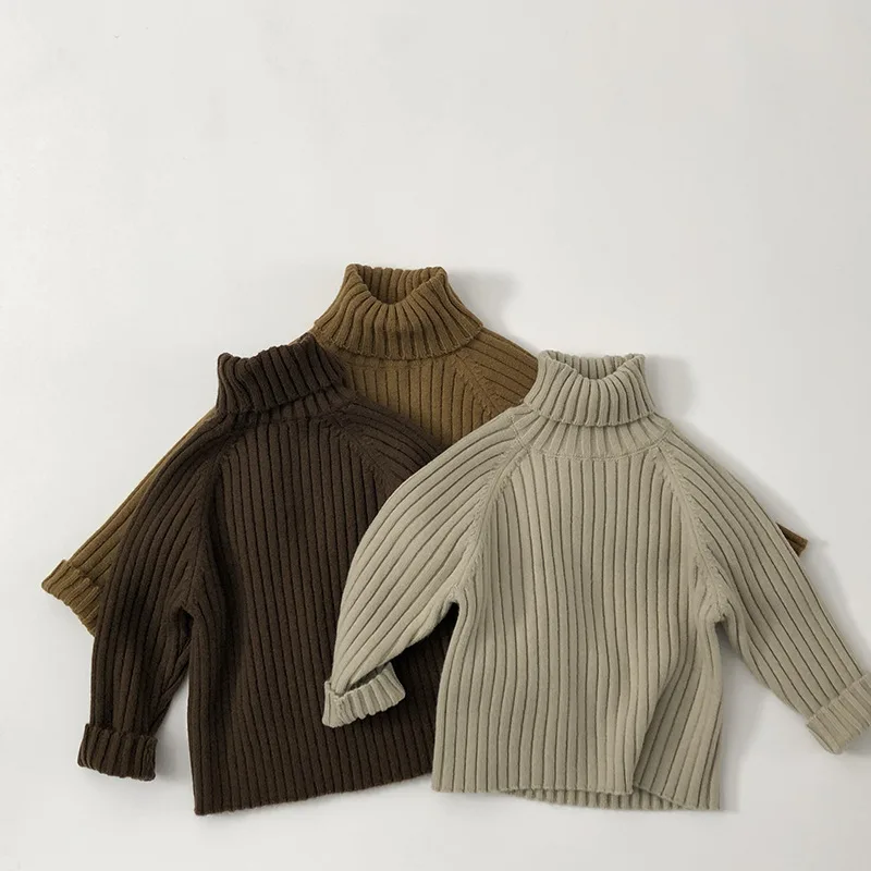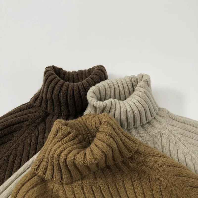 MQTIME - 2025 New Korean Boutique Turtleneck Knitted Kids Sweaters Pit Stripe Bottoming Sweatershirts for Boys and Girls