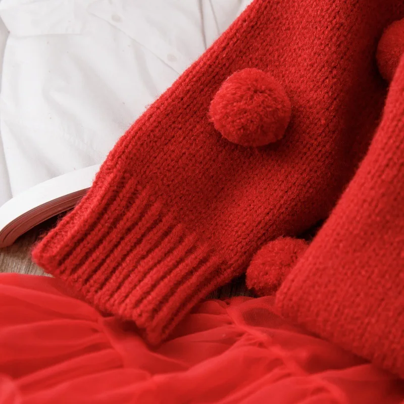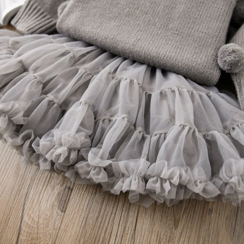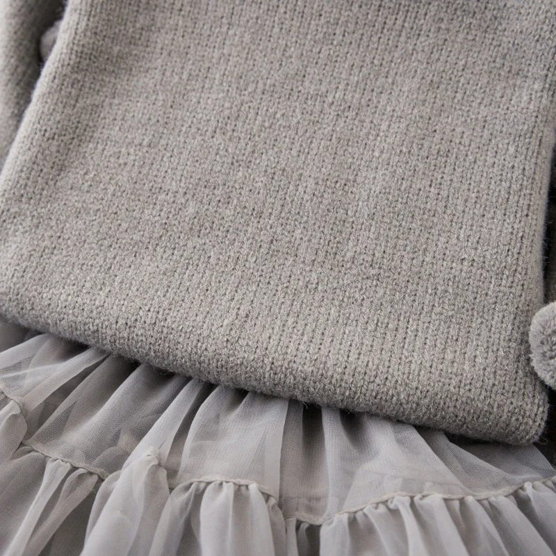 MQTIME - 2025 Spring New Girls Clothing Set Prom Knit Pullover And Ball Gown Skirt 2 Pcs Knitwear Kids Outfit