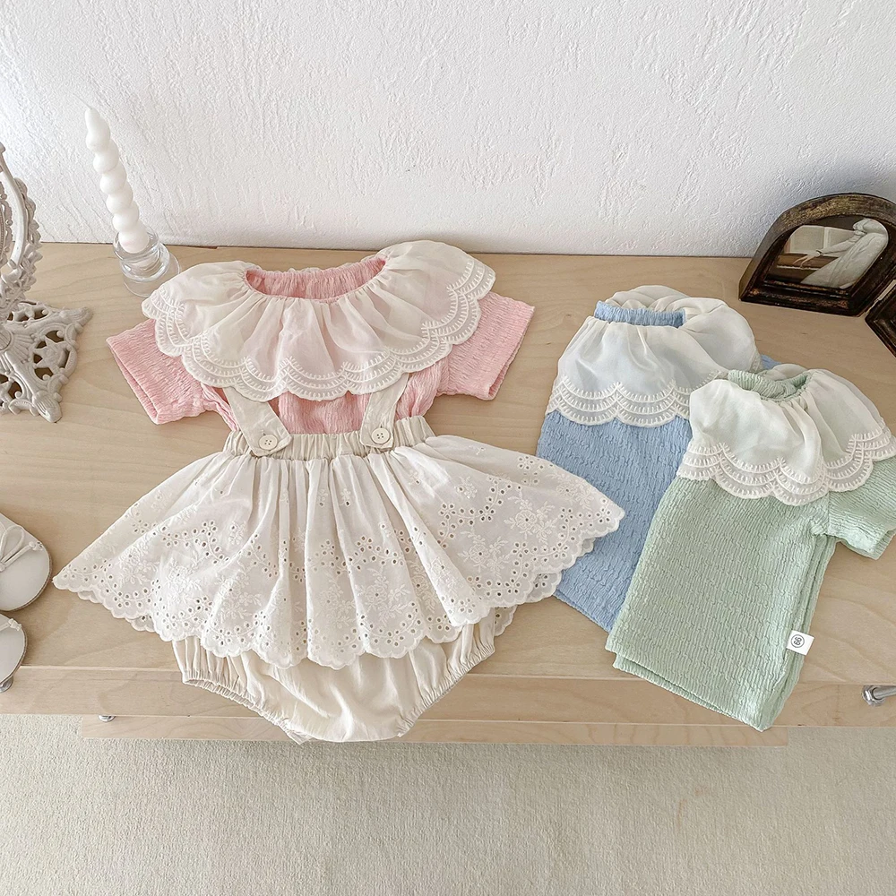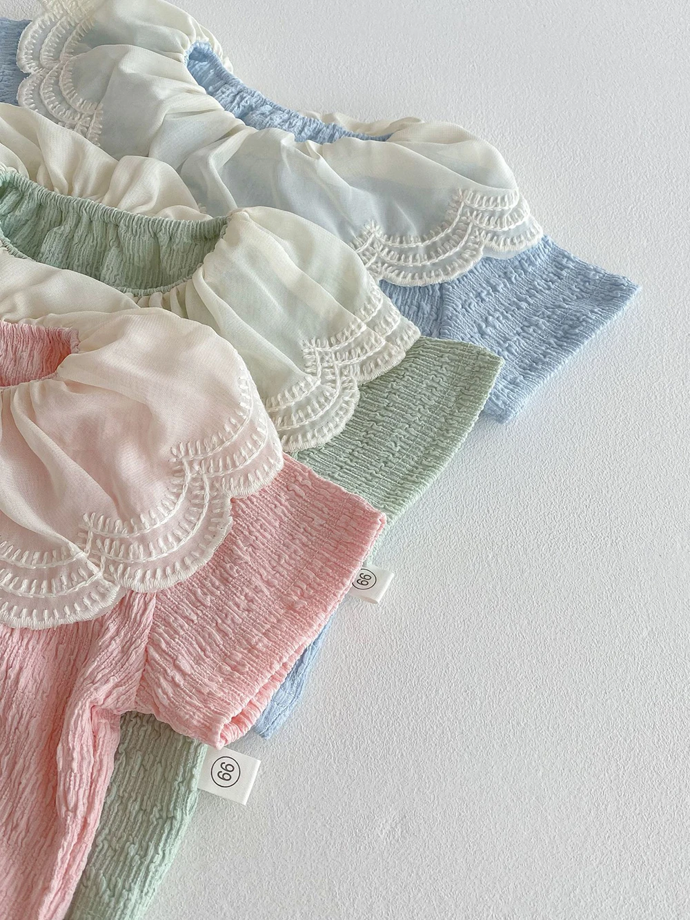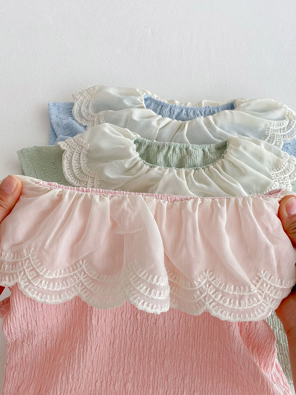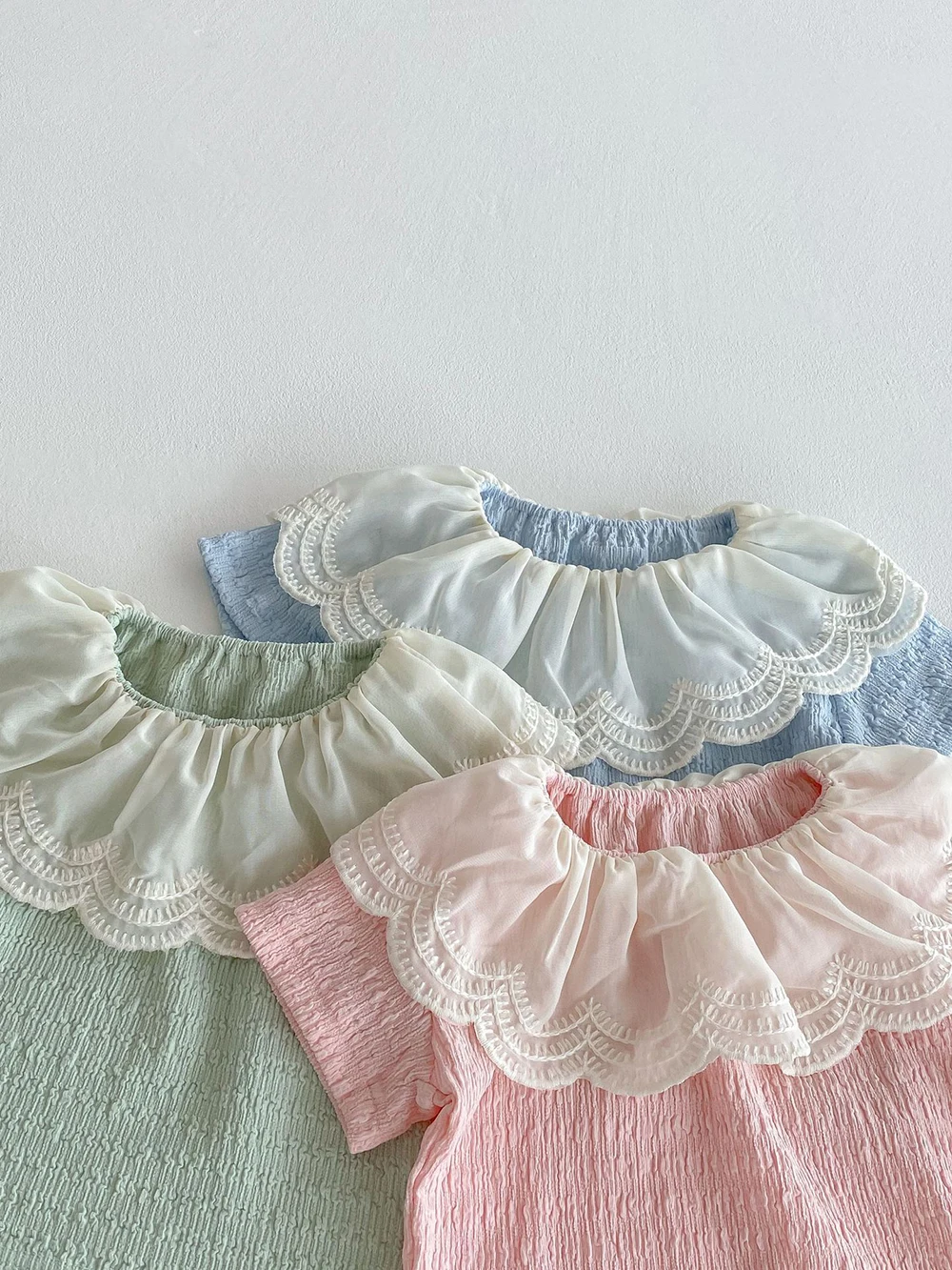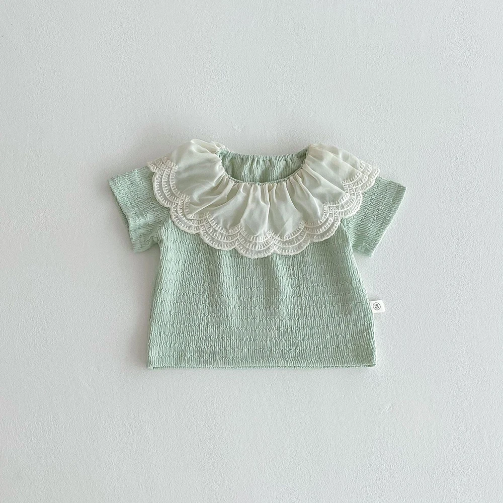 MQTIME - 2025 Summer Baby Girls Clothes Big Lace Collar Girls Tee Solid Candy Color Base Ruffle Shirt Girls T Shirt