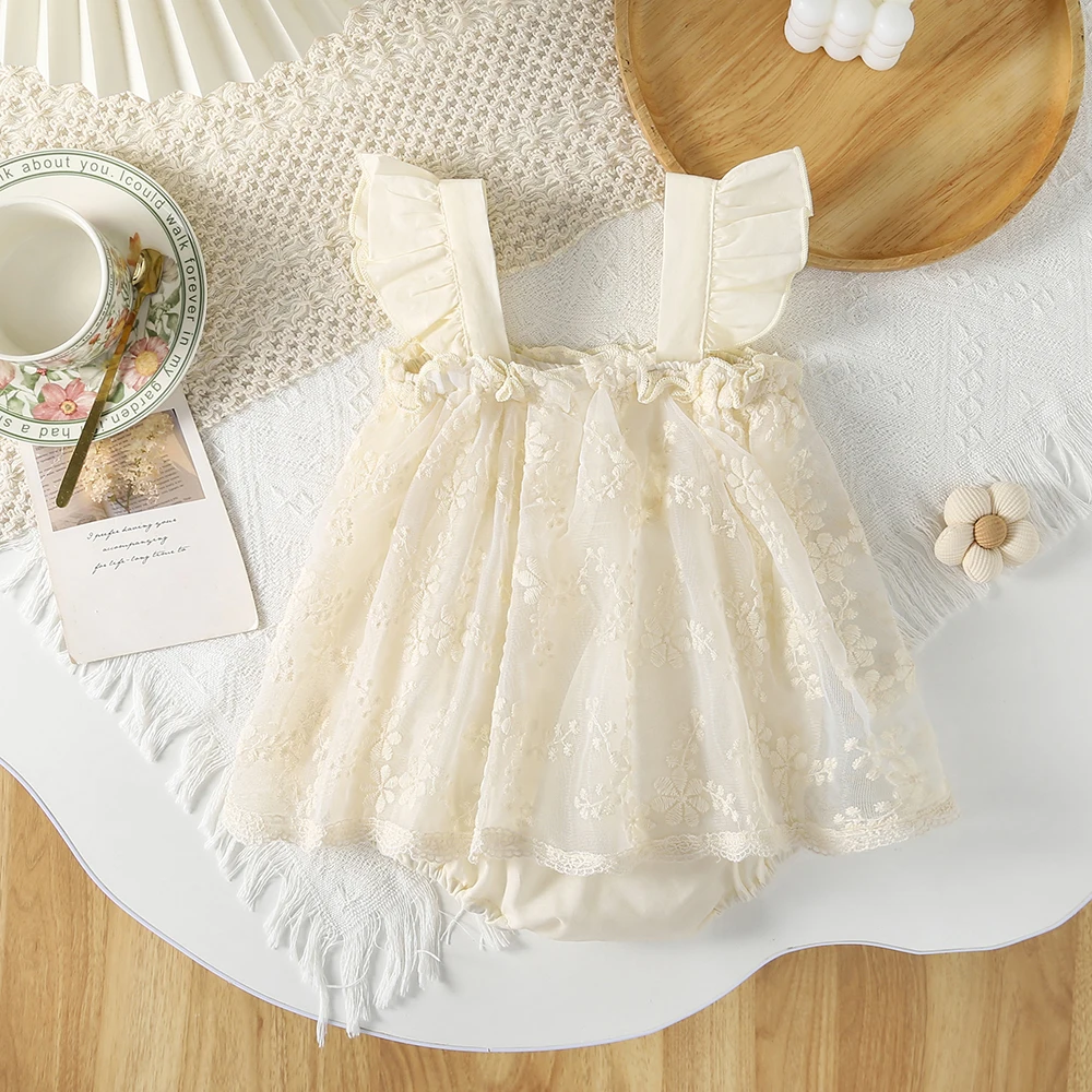 MQTIME - 2025 Summer Baby Girls Clothes Embroidery Lace Bodysuit& One Piece Sleeveless Toddler Clothing