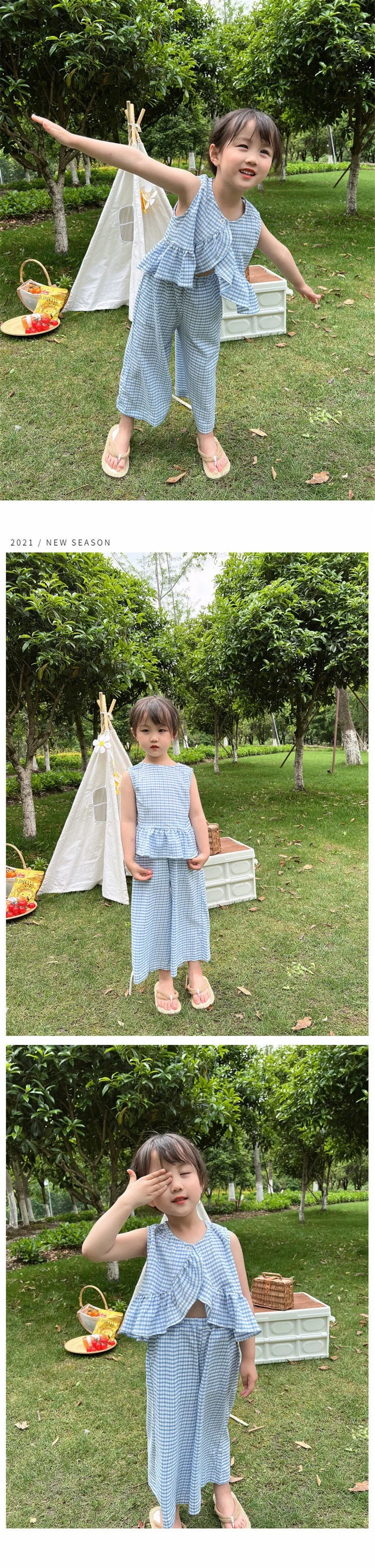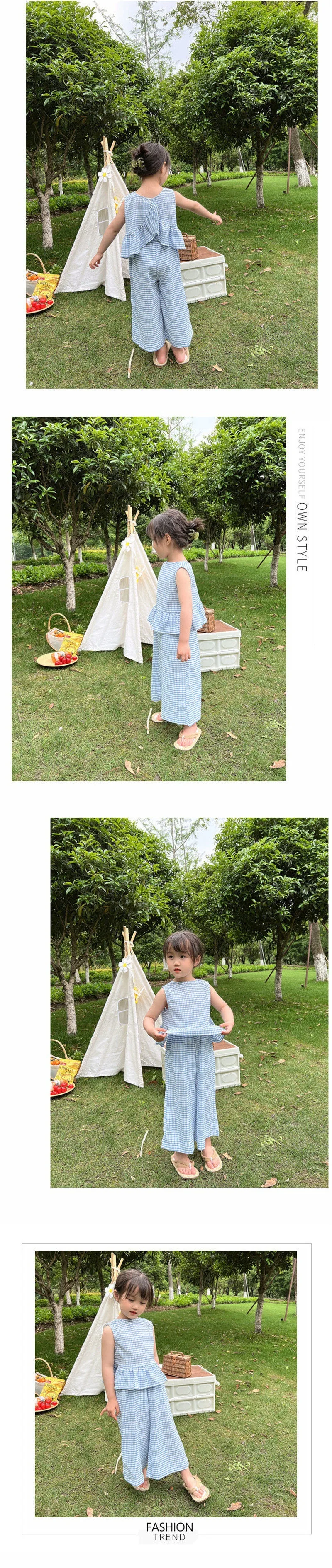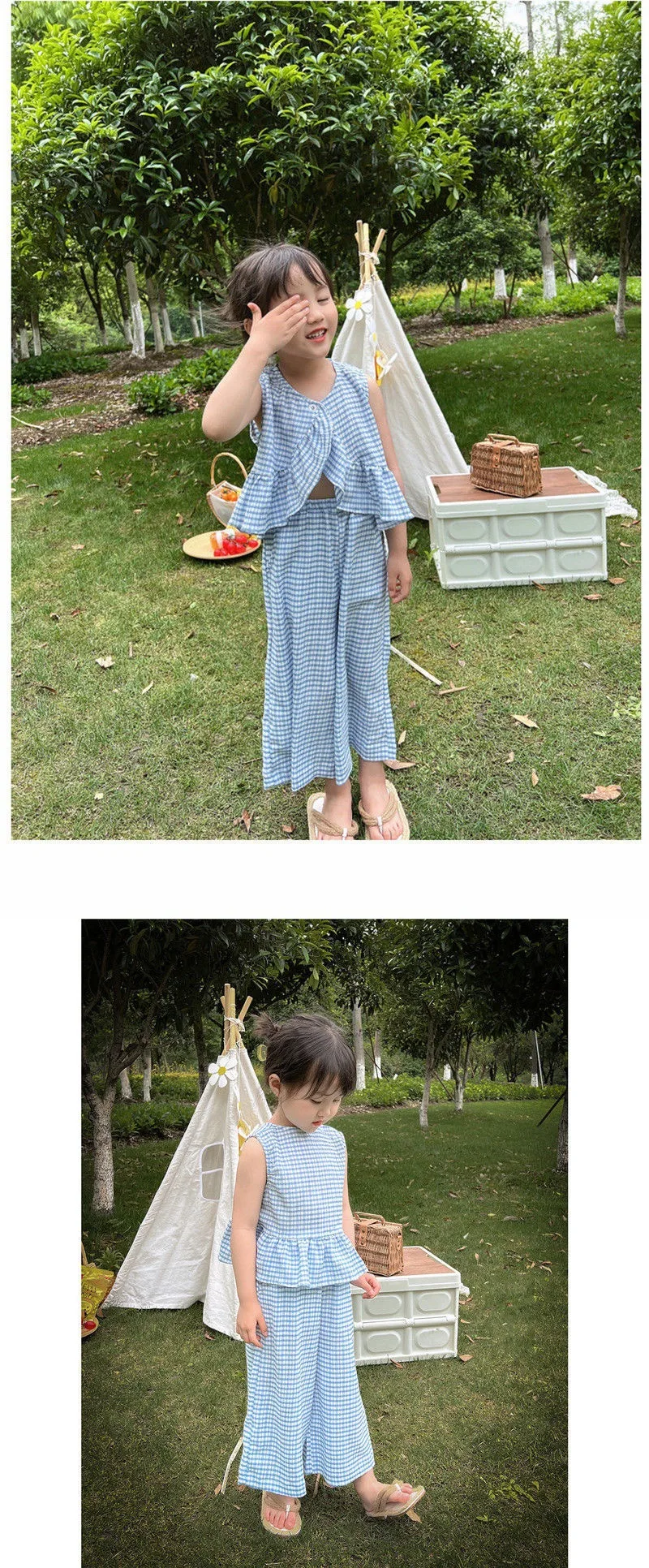 Mqtime 2pc Girls Clothing Set Summer Girls Cute Ruffles Plaid Vest Tops And Wide Long Pants Trousers Set With Pant Children Clothes