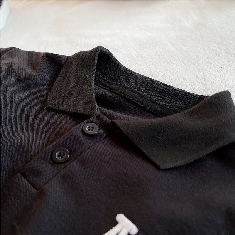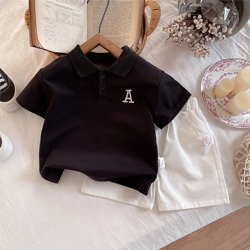 MQTIME - 2Piece 2025 Summer Baby Boy Clothes Korean Fashion Casual Letter Short Sleeve Black Tops+Shorts Clothings Children's Sets BC2116