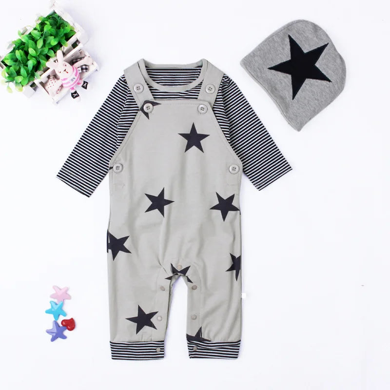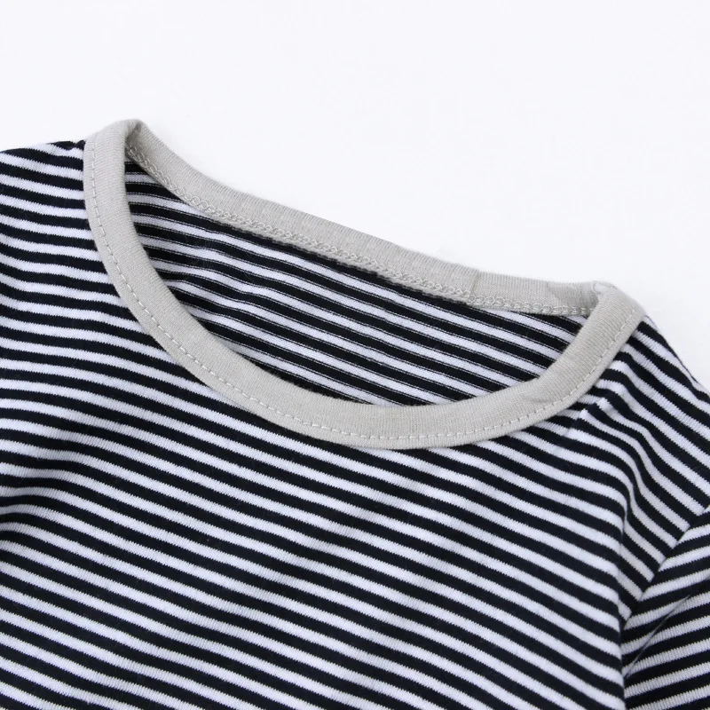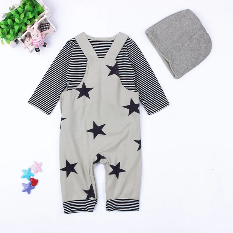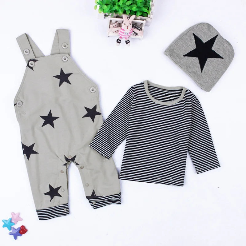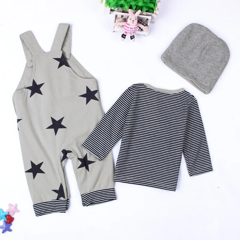 MQTIME - 2Piece Set Spring Fall Toddler Boy Outfits Korean Casual Cute Stripe Long Sleeve Tops+Overalls Baby Clothing Kids Clothes BC1564