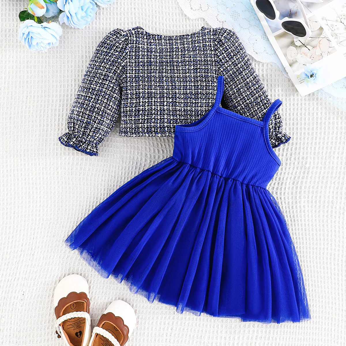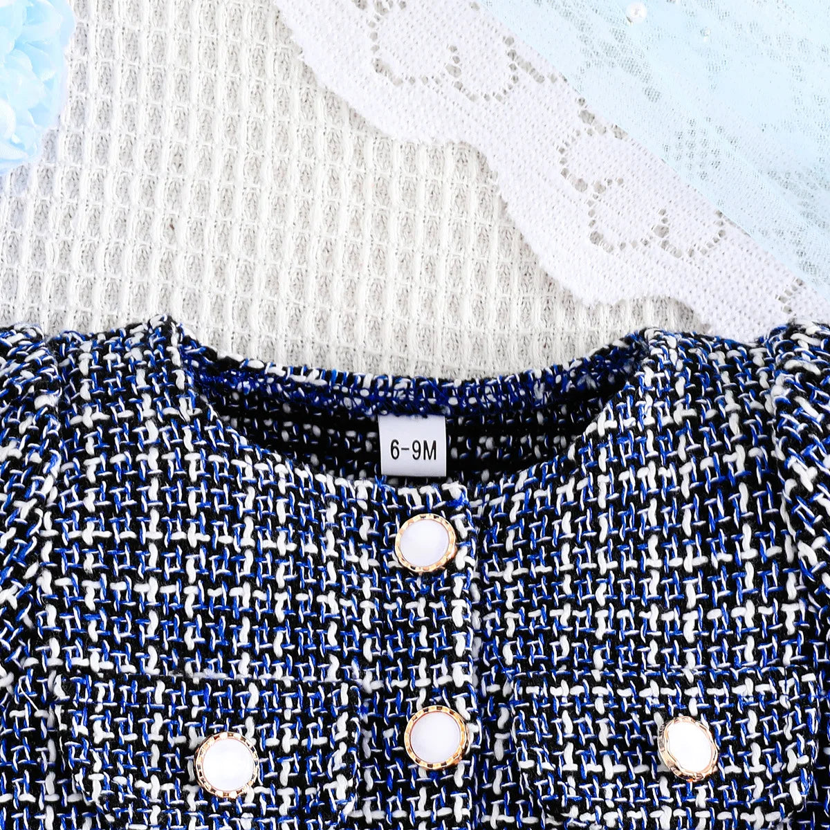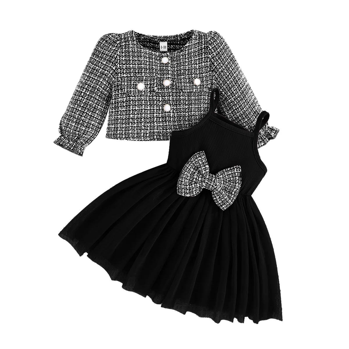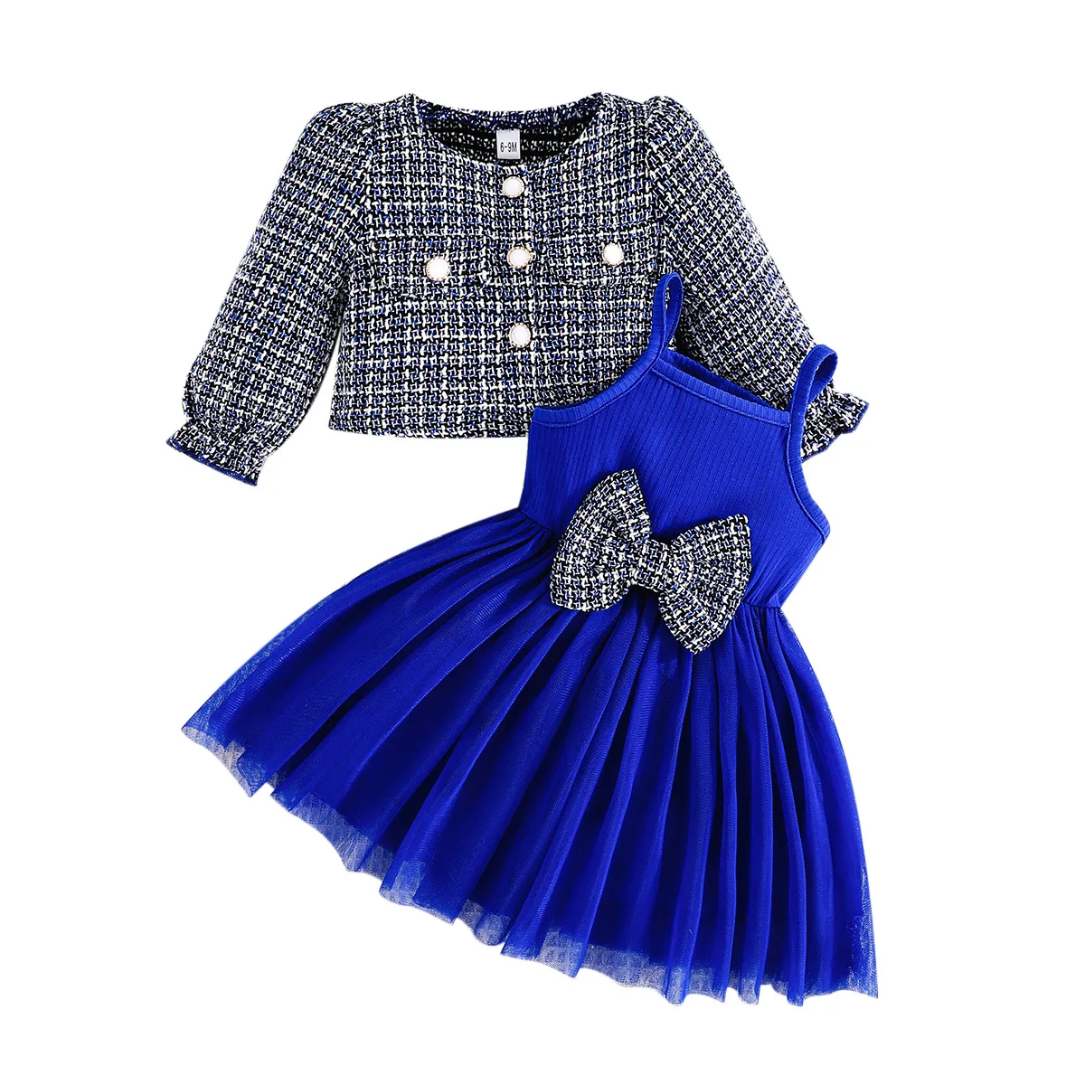 MQTIME - 2Piece Sets Spring Autumn Baby Clothes Girl Fashion Cute Bow Button Coat+Lace Sleeveless Princess Dress Kids Clothing BC1739