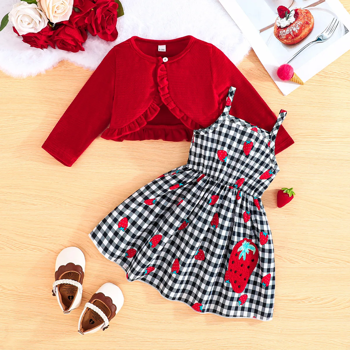 MQTIME  -  2Piece Sets Spring Autumn Infant Girl Clothes Korean Cute Cartoon Plaid Long Sleeve Cotton Tops+Dress Baby Newborn Items B022
