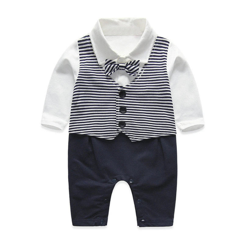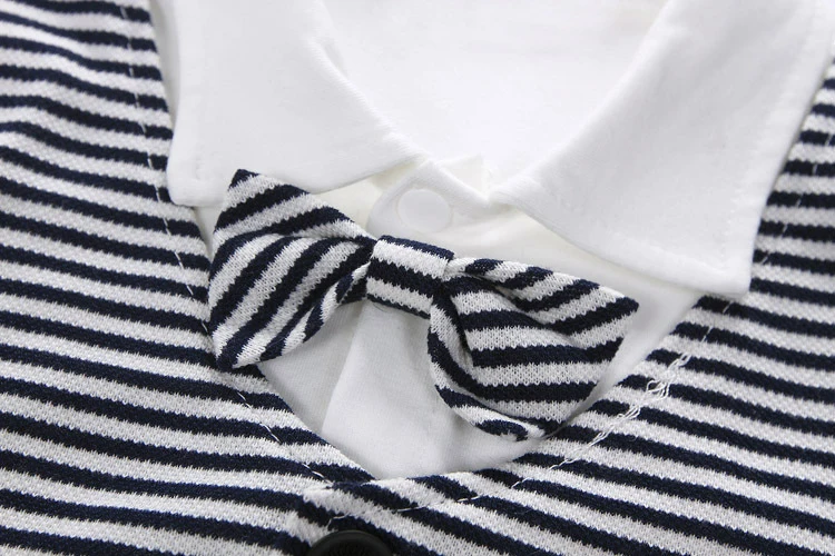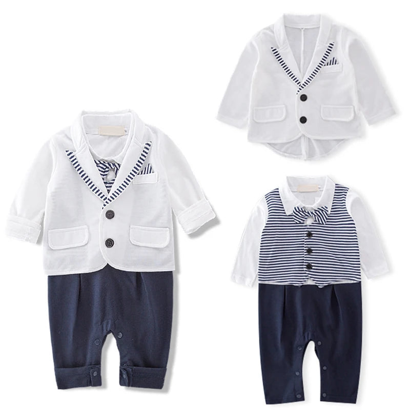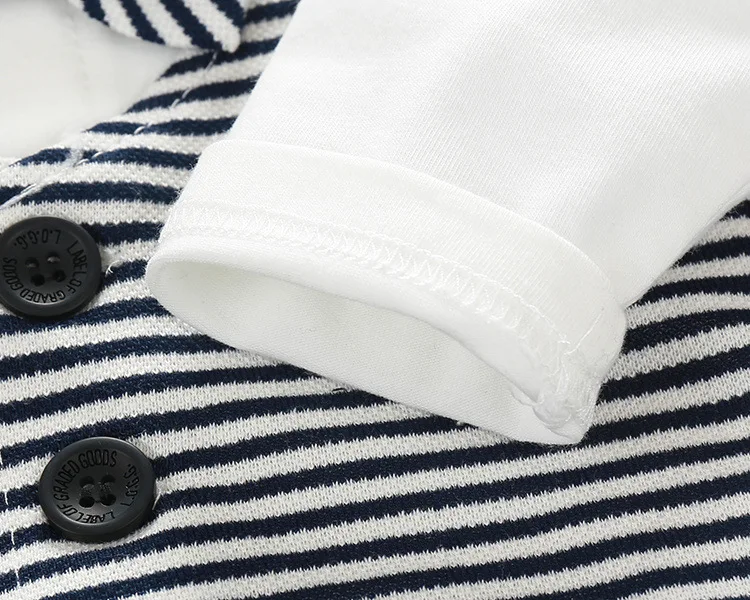 MQTIME - 2Piece Sets Spring Autumn Newborn Boys Clothes Gentleman Fashion Stripe Long Sleeve Coat+Jumpsuit Baby Boutique Clothing BC1148