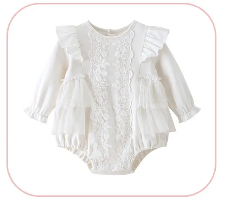 MQTIME  -  2Piece Spring Autumn Infant Girl Clothes Korean Cute Lace Cotton Long Sleeve Baby Romper Bodysuit+Hair Band Newborn Items BC1757