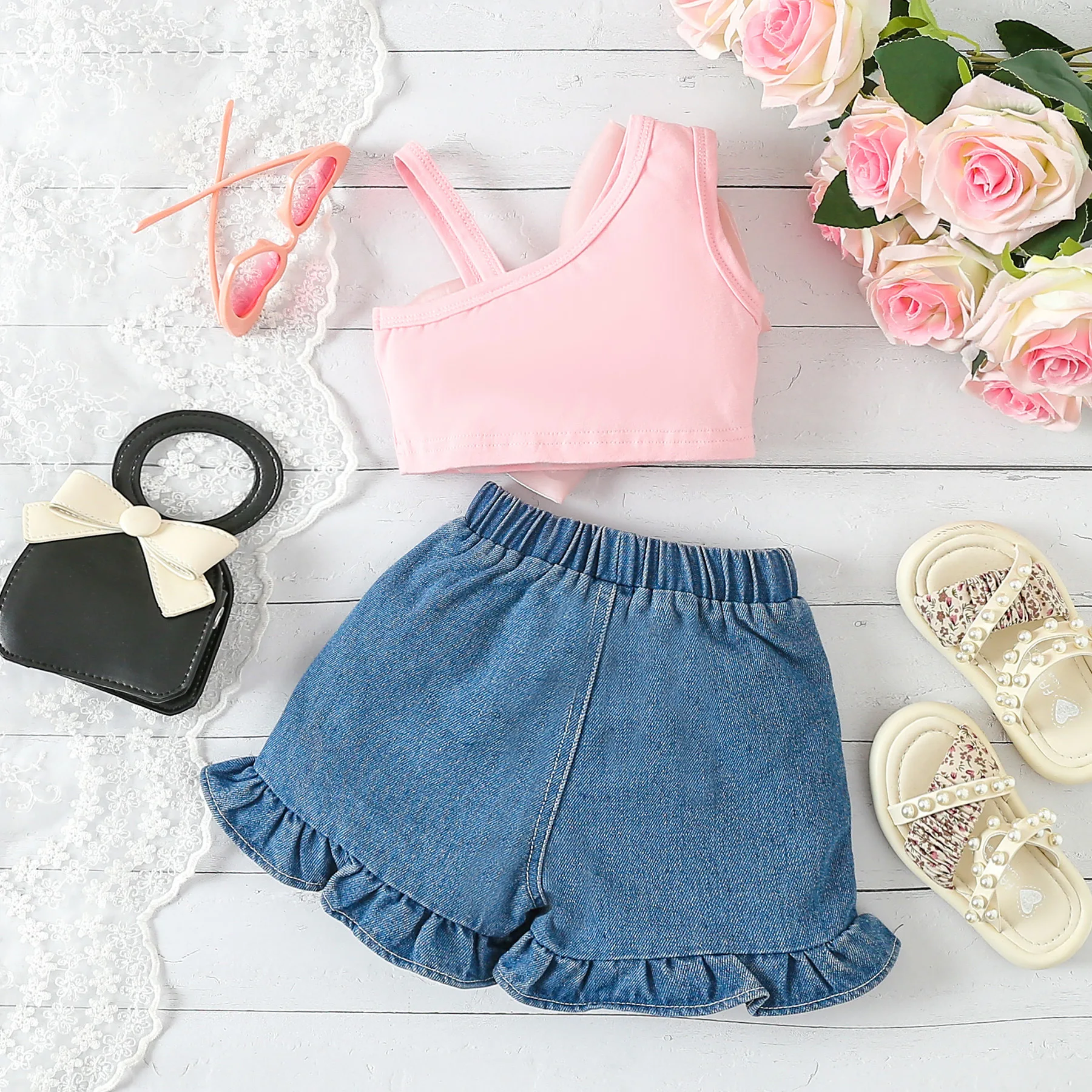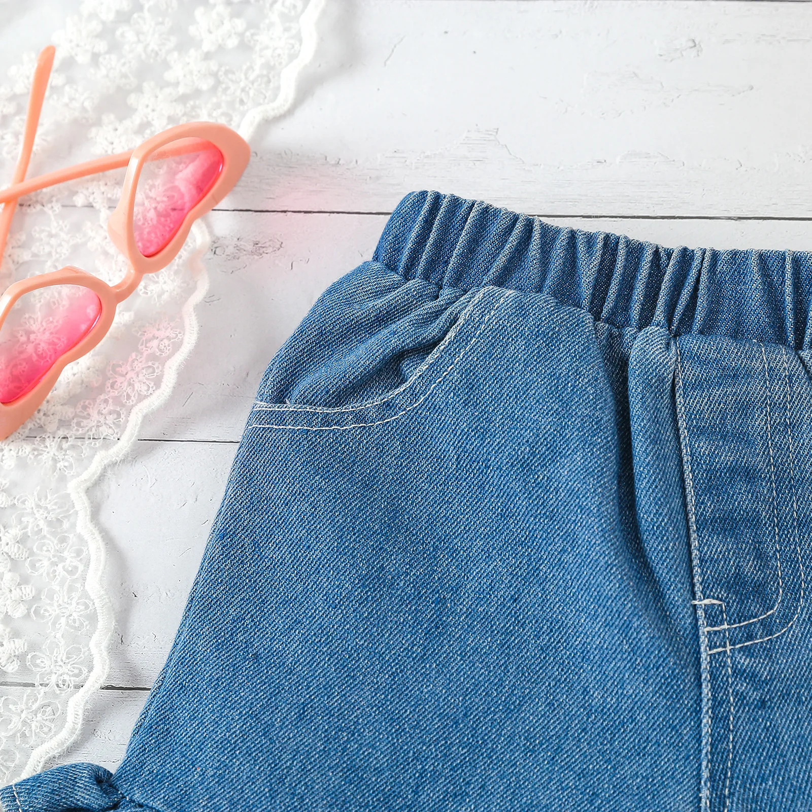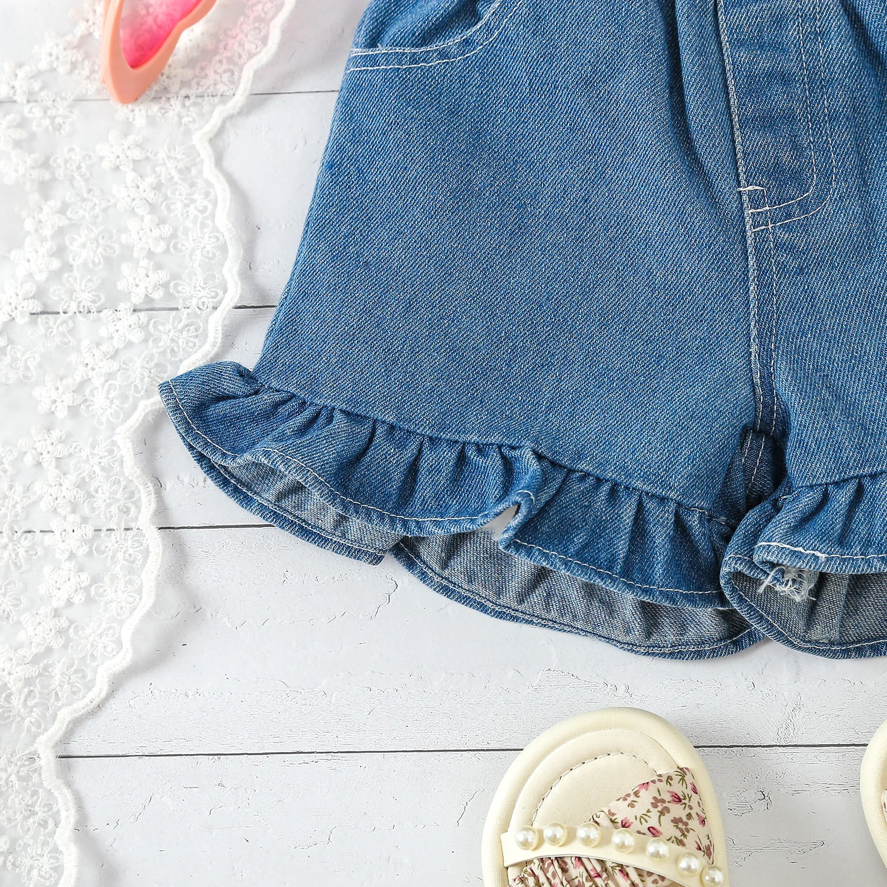 MQTIME - 2Piece Summer Baby Clothes Toddler Girl Outfits Set Korean Fashion Big Bow Tops+Denim Shorts Children Boutique Clothing
