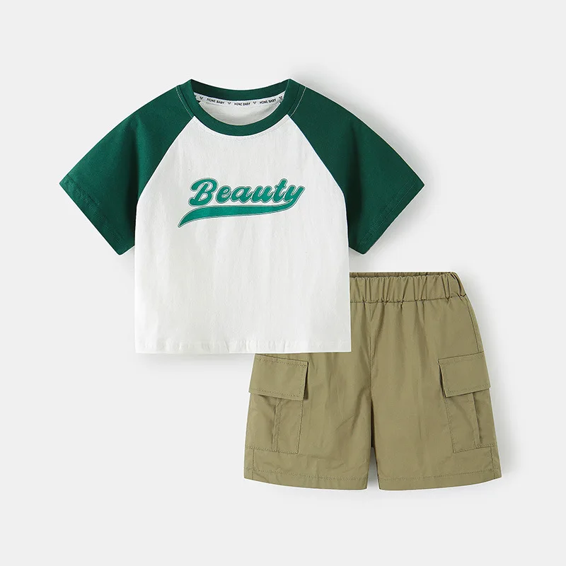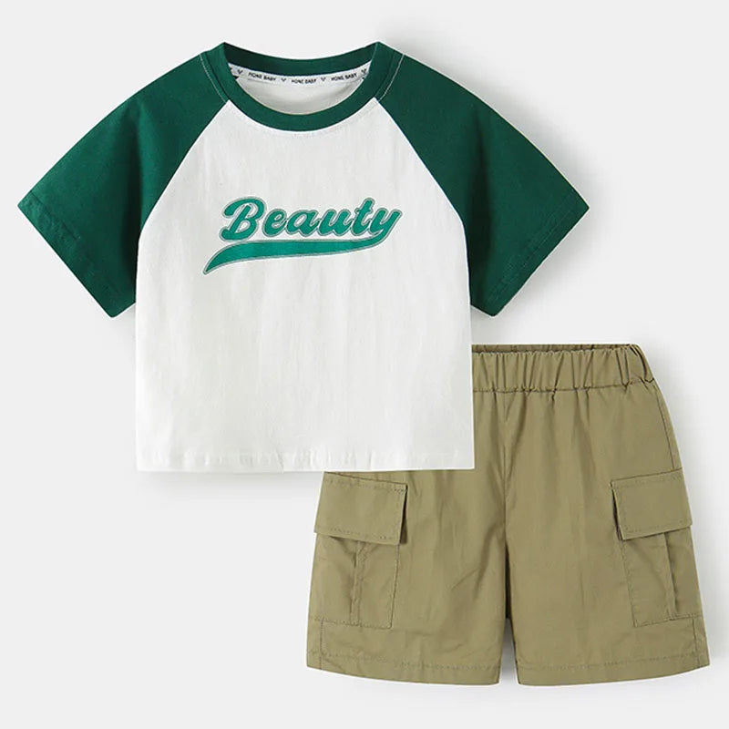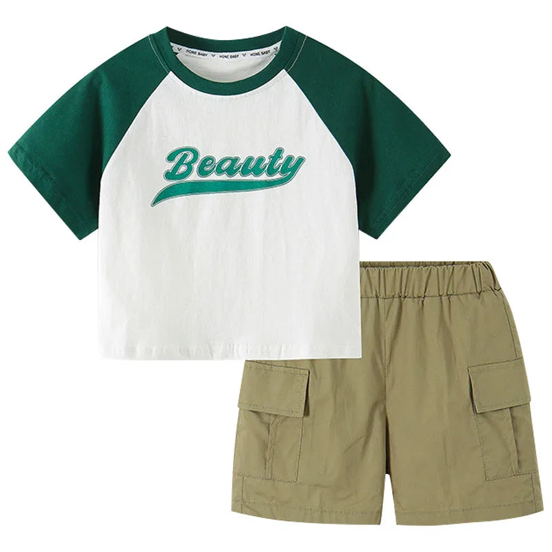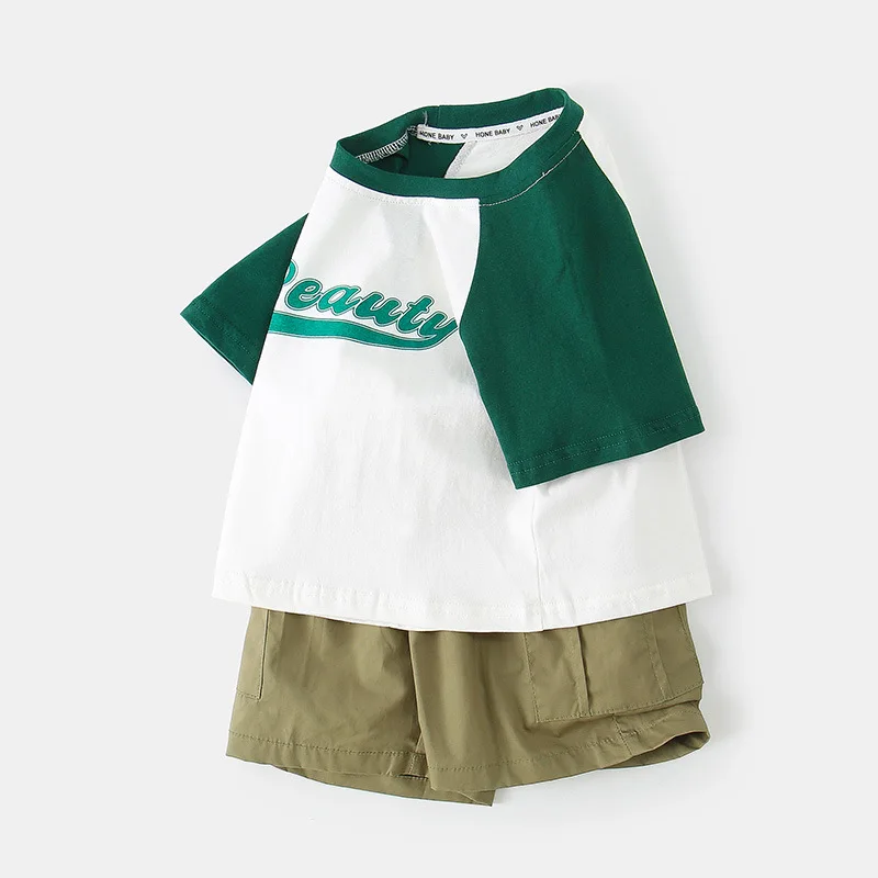MQTIME - 2Piece Summer Toddler Boy Outfits Korean kids Clothes Fashion Letter Short Sleeve Tops+Shorts Baby Clothing Children's Sets B046