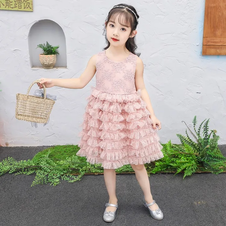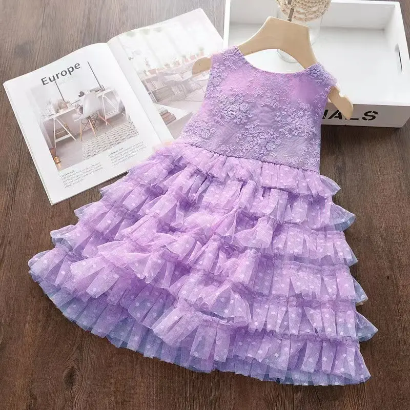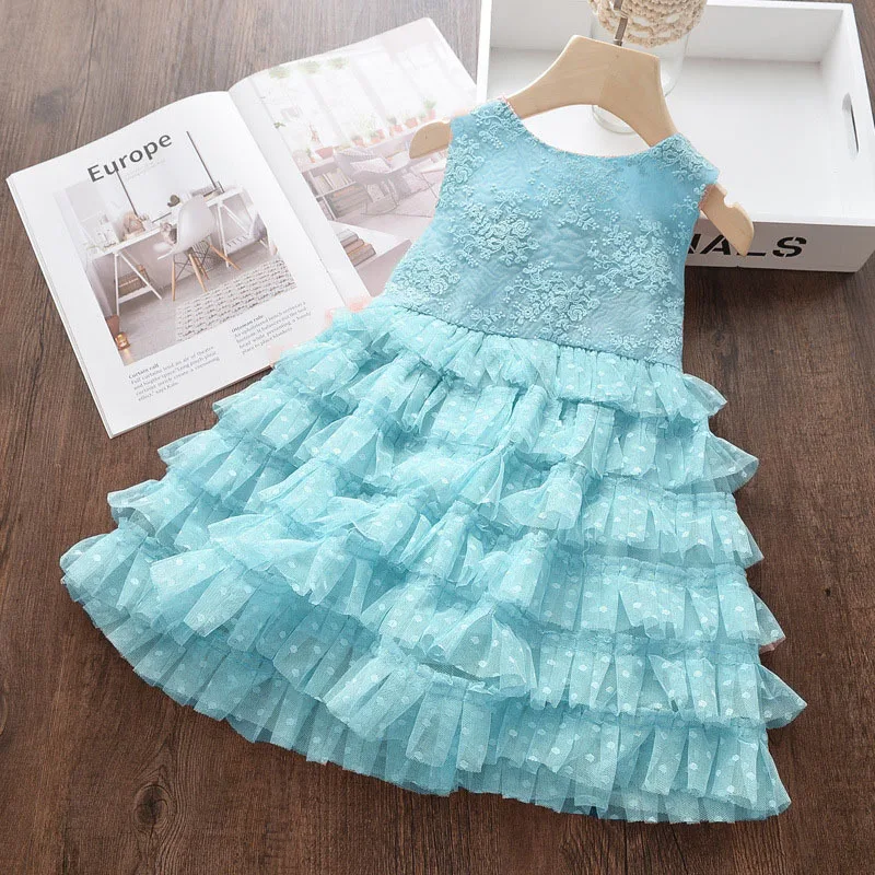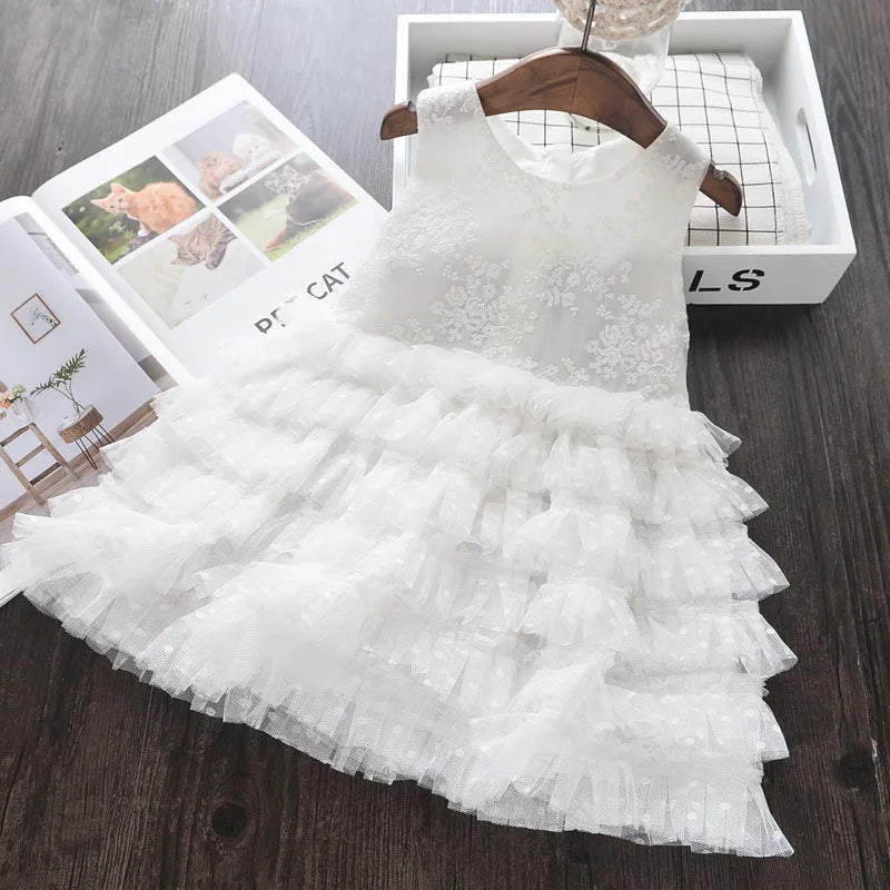 MQTIME - 3-8Y Elegant Kid Girl Dress Tulle Layered Dress Sleeveless Princess Costume Wedding Party Costume Baby Girl Clothes Child A1123