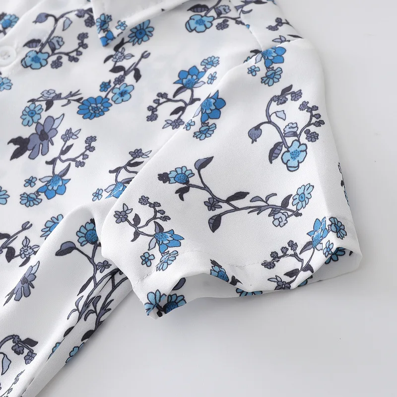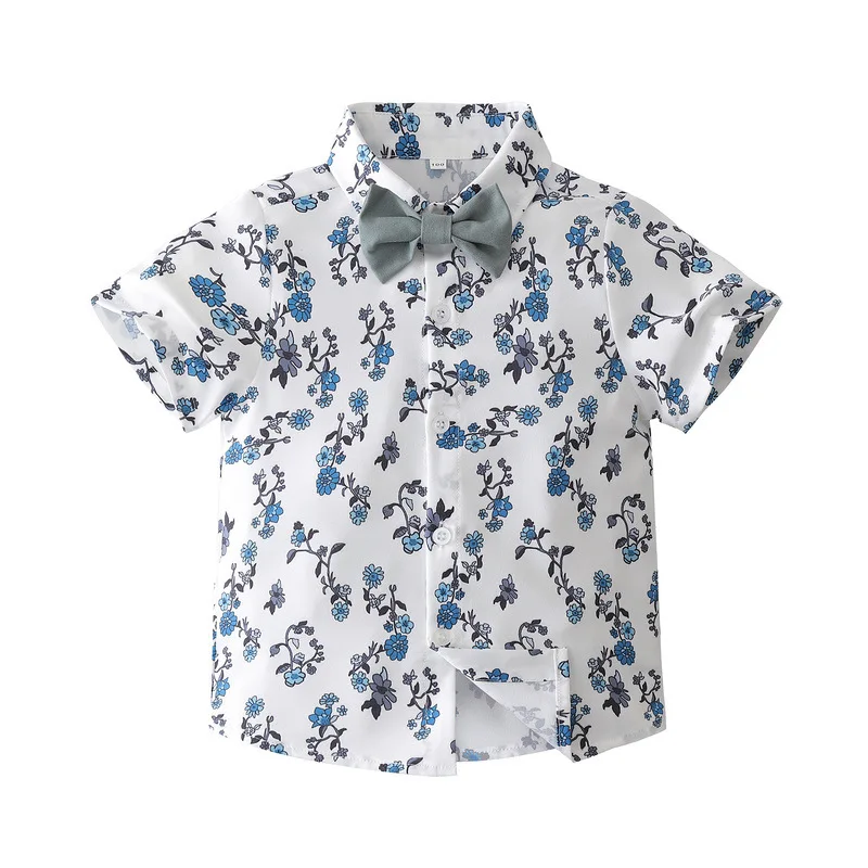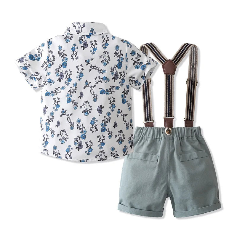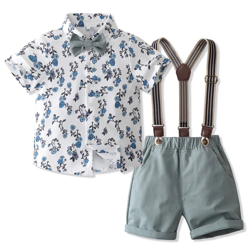 MQTIME - 3Piece Sets Summer Baby Boy Clothes Fashion Flowers Gentleman Tie Short Sleeve Tops+Shorts+Straps Boutique Kids Clothing