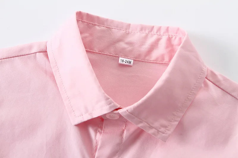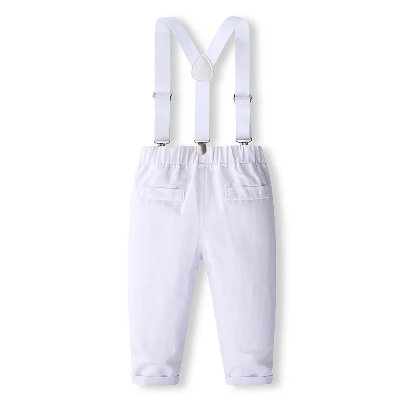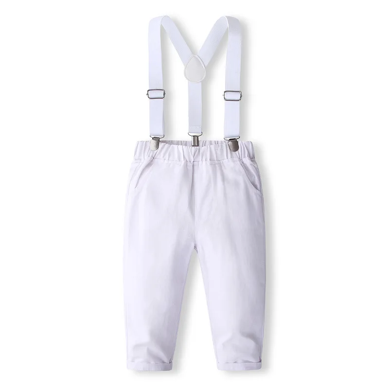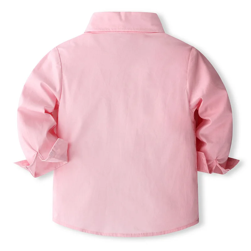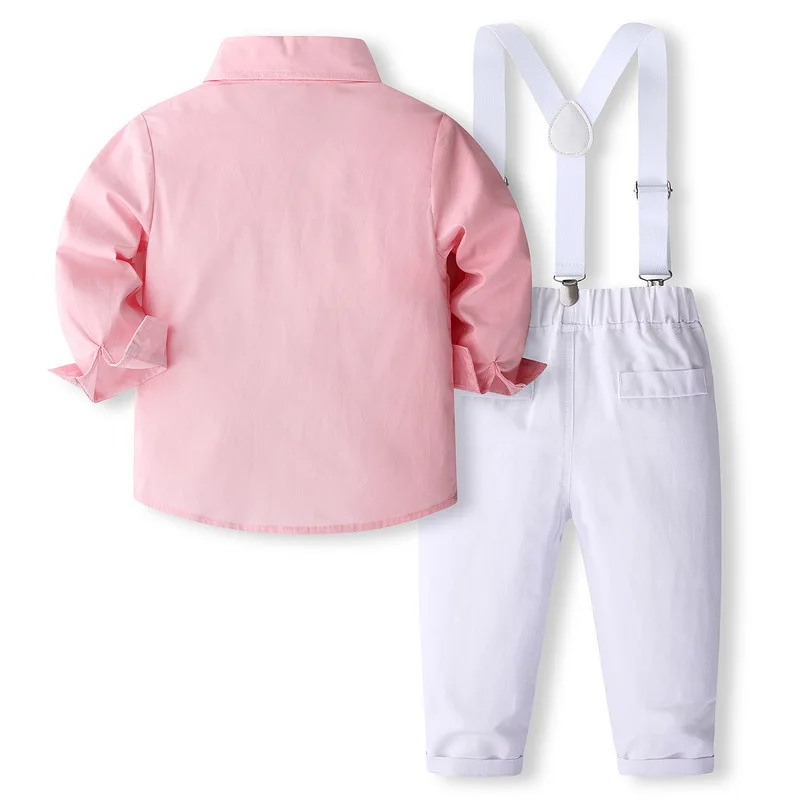 MQTIME - 3Piece Spring Autumn Baby Boy Clothes Korean Fashion Gentleman Tie Long Sleeve Pink Tops+Pants+Straps Children's Sets BC1138