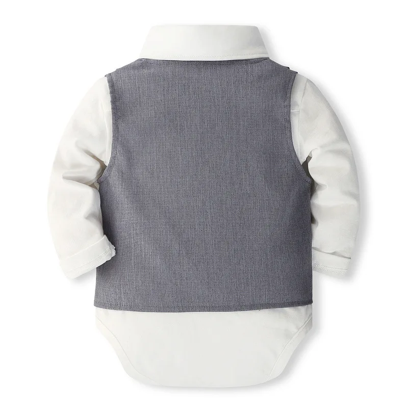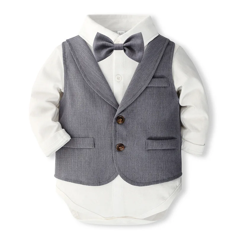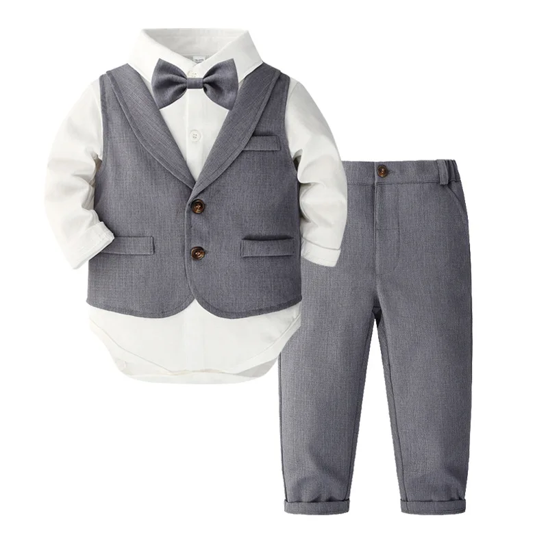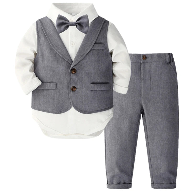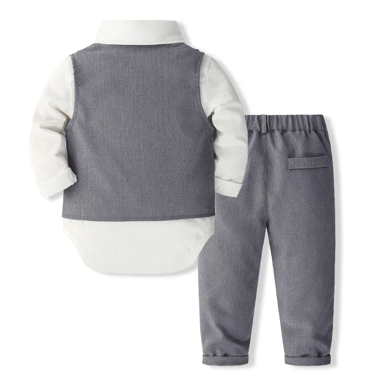 MQTIME - 4Piece Set Fall Toddler Boy Outfits Korean Fashion Gentleman Suit Long Sleeve Bodysuit+Vest+Pants+Tie Luxury Baby Clothes BC1657
