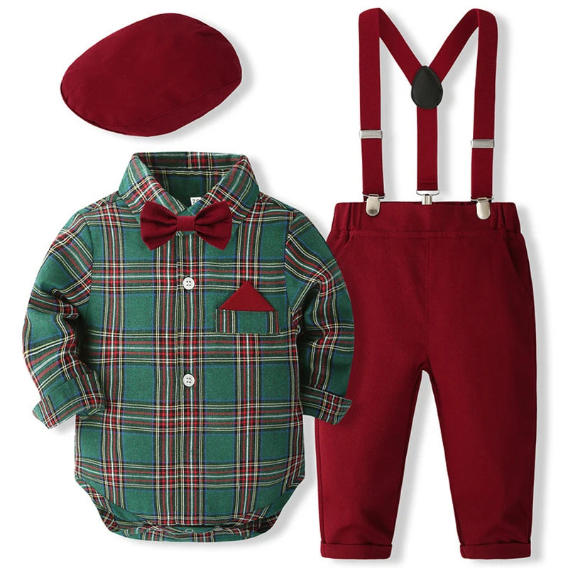 MQTIME - 5Piece Spring Autumn Kids Clothes Boys Korean Fashion Plaid Gentleman Bodysuit+Pants+Hat Baby Luxury Clothing Newborn Set BC1693