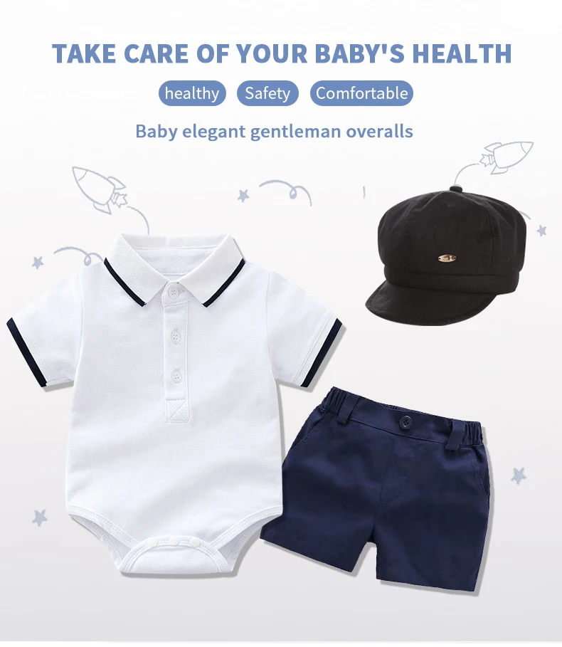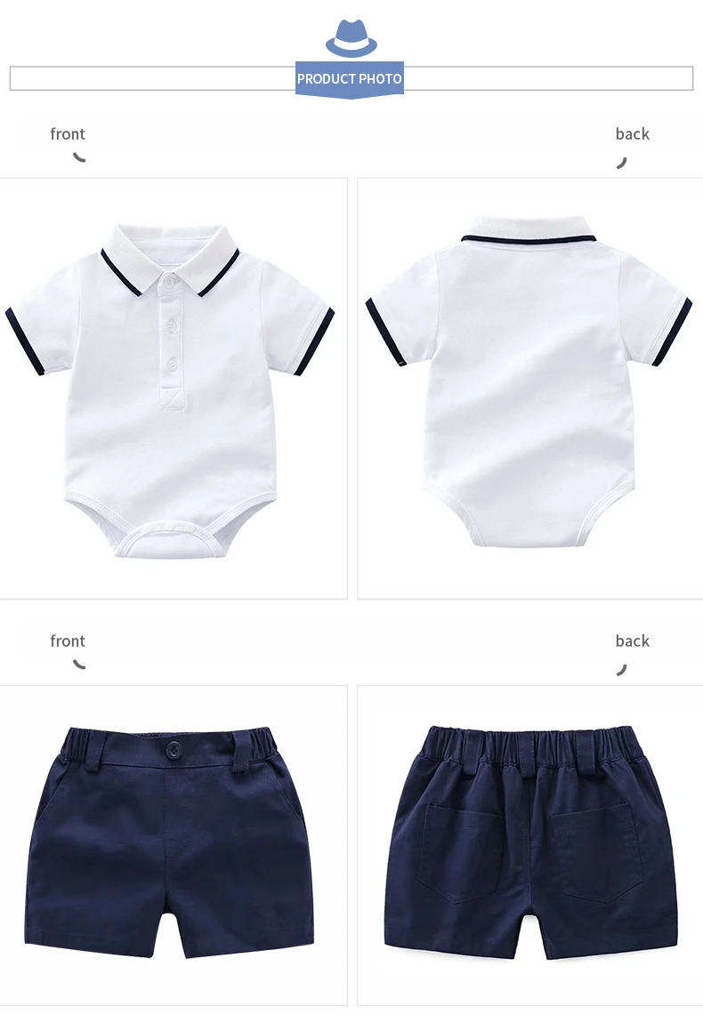 MQTIME - 9 12 18 24 36M Boys Summer Daily Clothes Infant Short Sleeve Bodysuit with Pocket Shorts 2PCS Toddler Cotton Outfit Sets