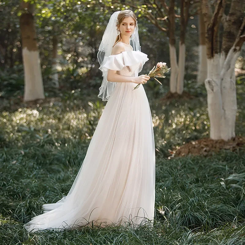 MQTIME - A-line bridal line Lace satin gown Mary Plus Size Beach Bridal Gown Sweep train tulle applique Bohemian Foyer new 2024 New