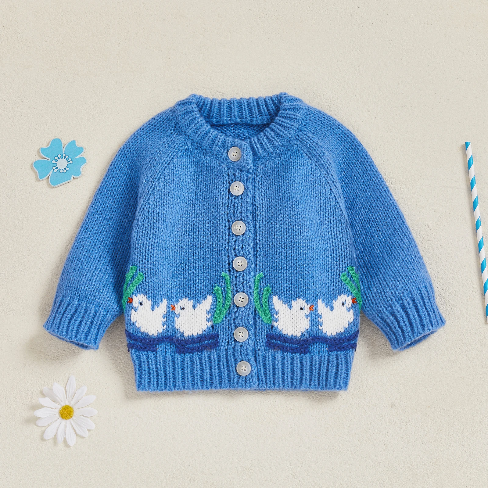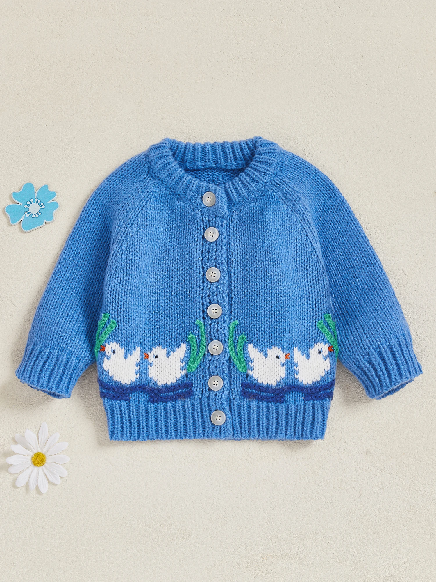 MQTIME - Adorable Infant Knitted Cardigan with Cute Duck Design Cozy Round Neck Button-up Sweater for Baby s Casual Winter Wardrobe