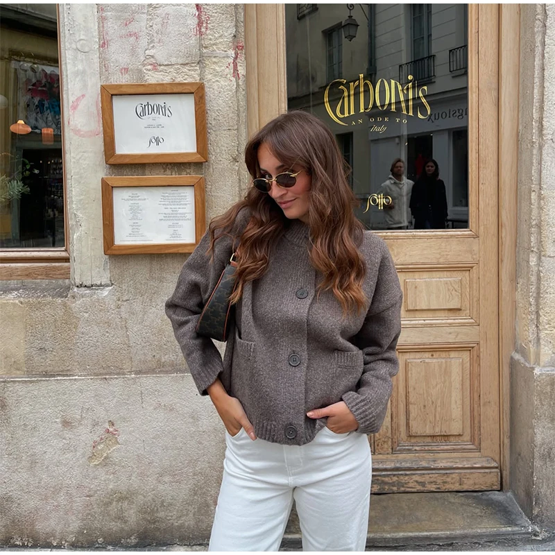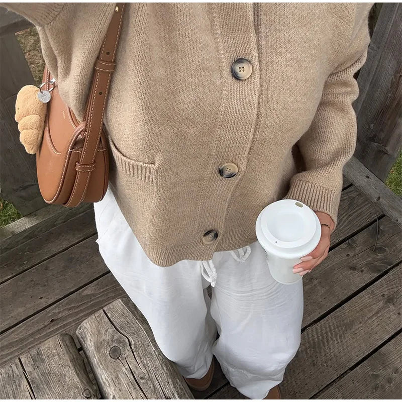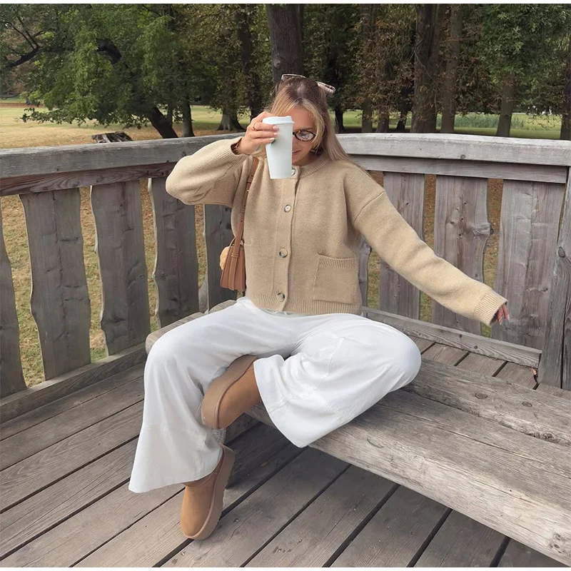 MQTIME - All-match Knit Women Cardigan Casual O-neck Long Sleeve Single Breasted Pccket Female Cardigan Solid Lady Knitwear 2025