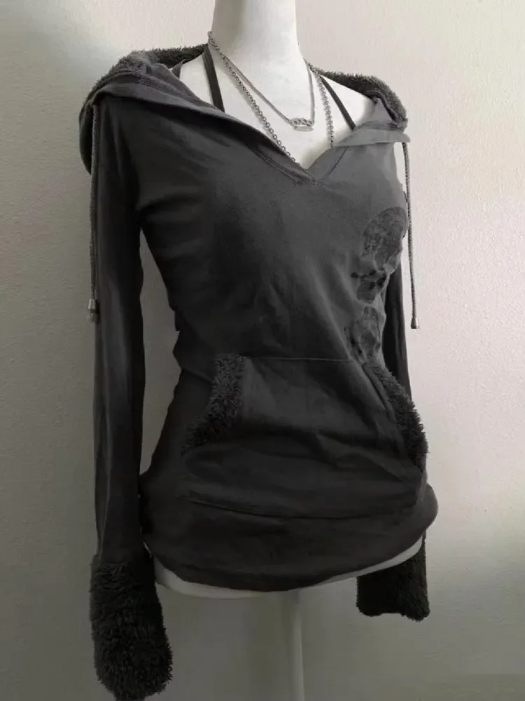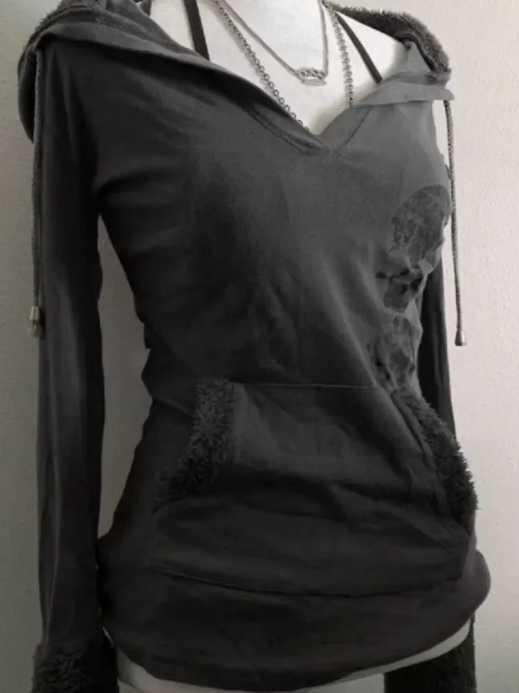 MQTIME - American Casual Fashion Womens Pullover Hoodie Retro Aesthetic Subculture Gothic Trend Sweatshirt Y2k Hip Hop Sportswear Hoodies
