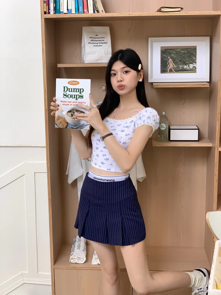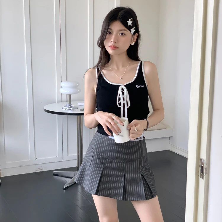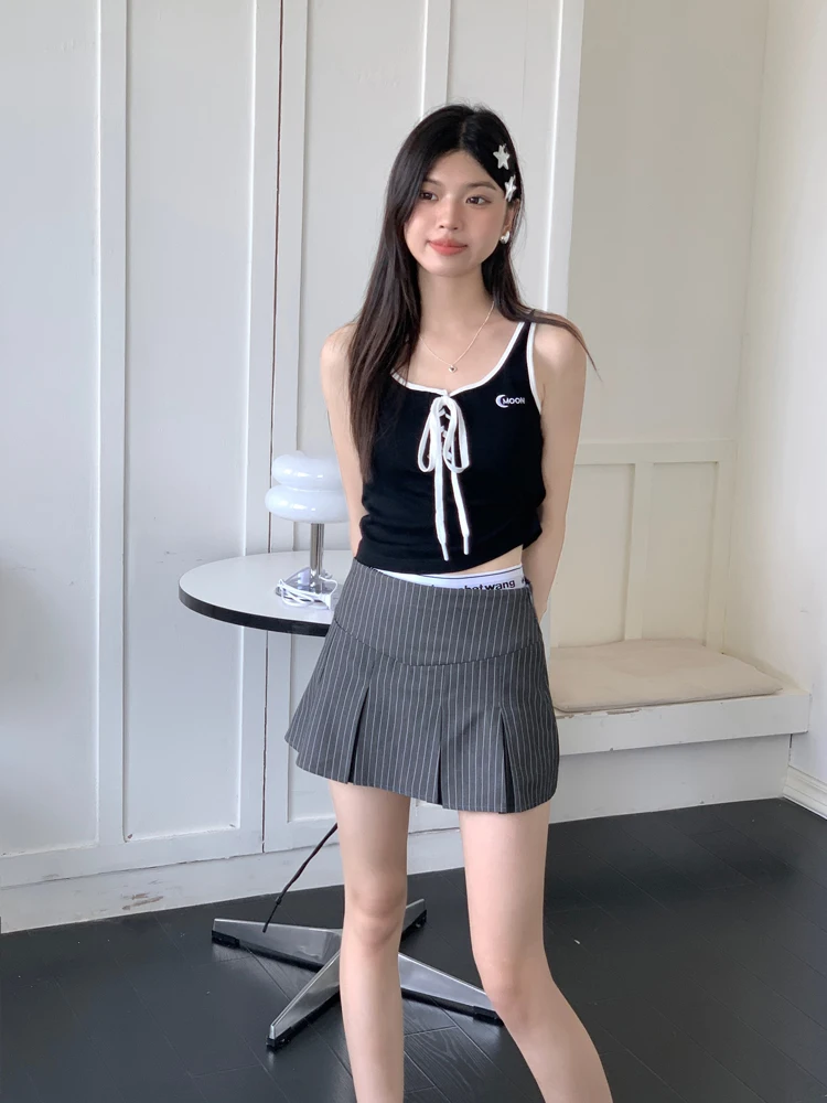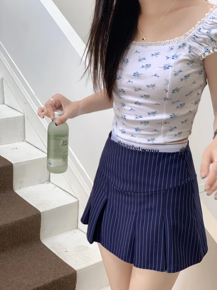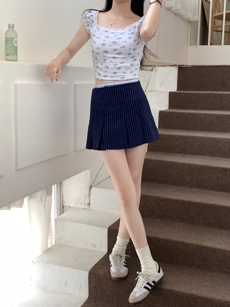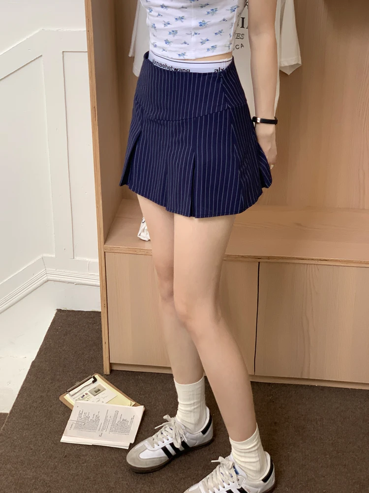 MQTIME - American Retro Stripe Mini Skirt Fake Two Pieces Patchwork High Waist Hip Wrap Skirt for Women Summer A-line Skirt New