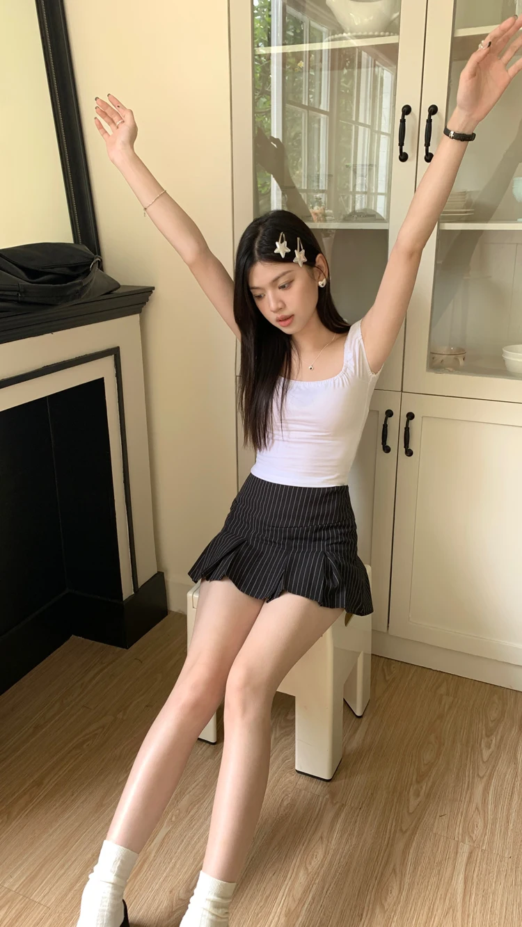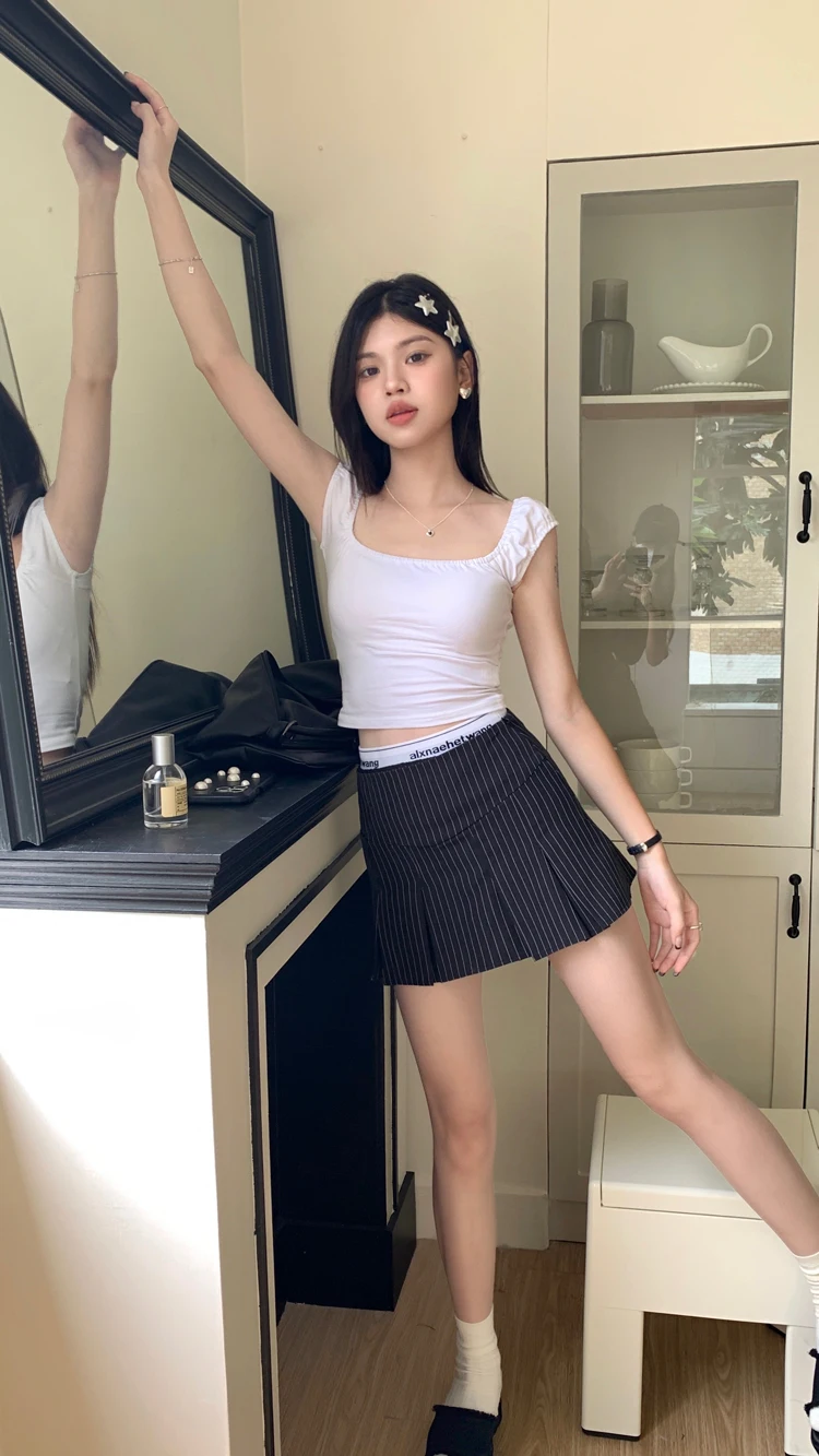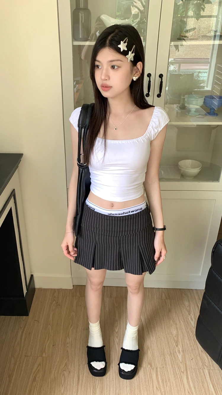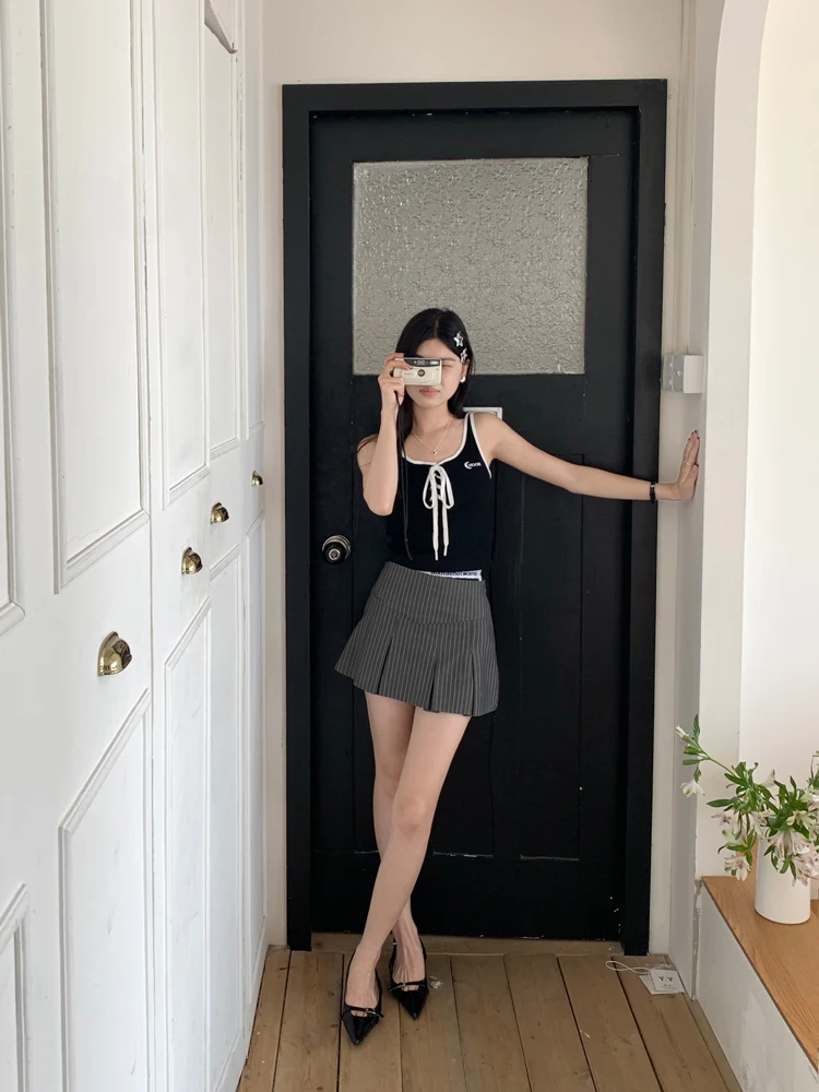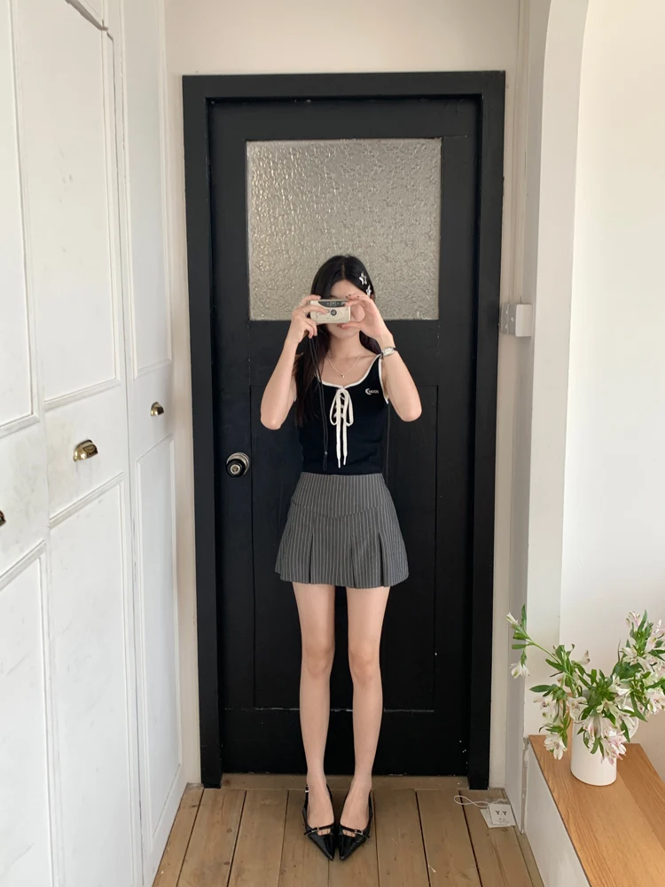 MQTIME - American Retro Stripe Mini Skirt Fake Two Pieces Patchwork High Waist Hip Wrap Skirt for Women Summer A-line Skirt New