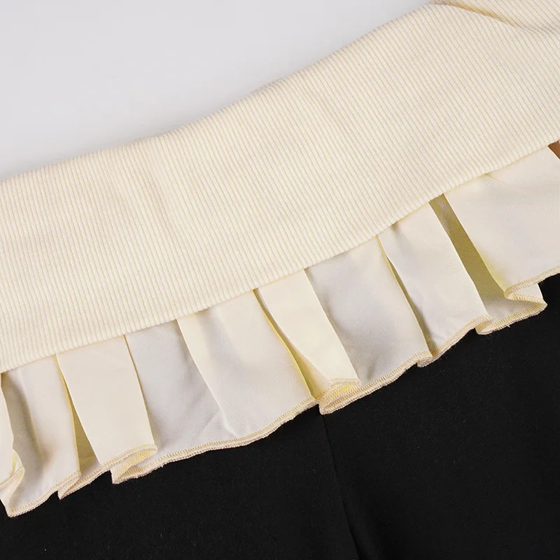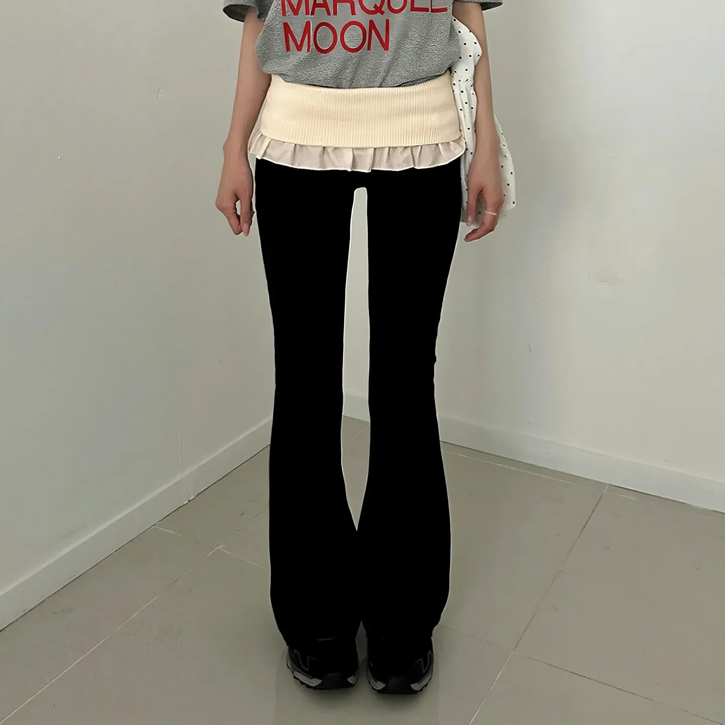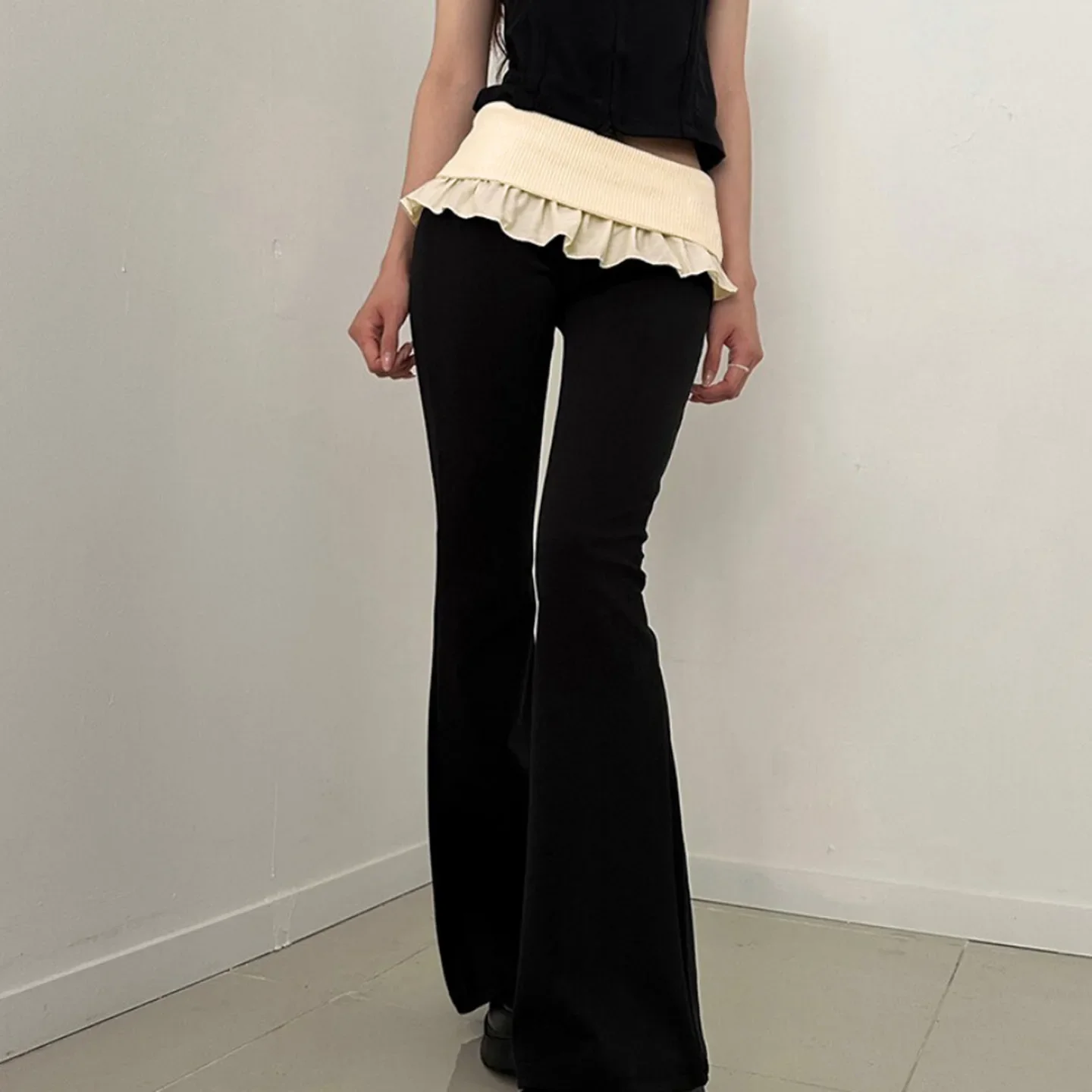MQTIME  -  Autumn Color Patchwork Lapel Waist Ruffles Slim Flare Pants Women Fashion Casual Streetwear Boot Cut Trousers All Matching