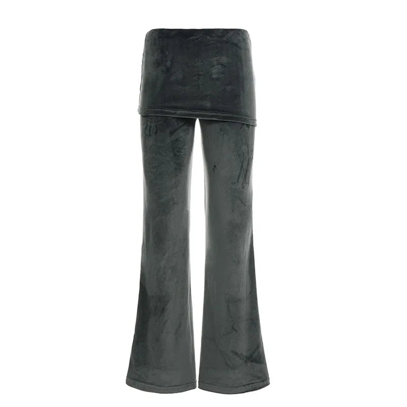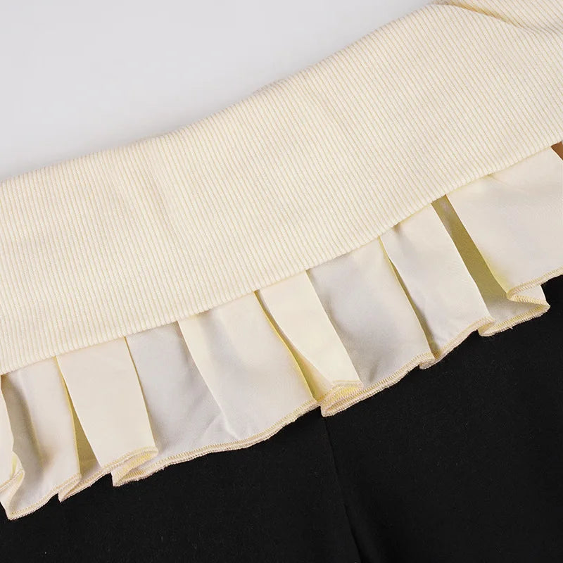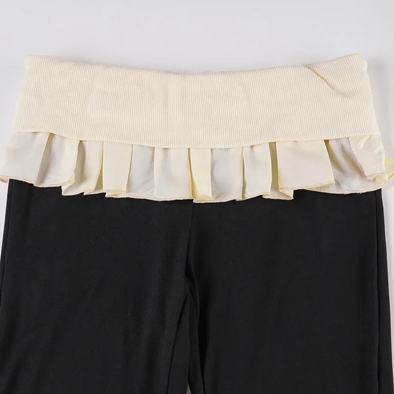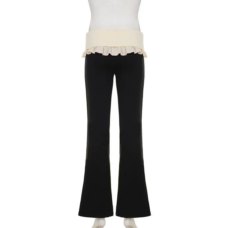 MQTIME - Autumn Color Patchwork Lapel Waist Ruffles Slim Flare Pants Women Fashion Casual Streetwear Boot Cut Trousers All Matching