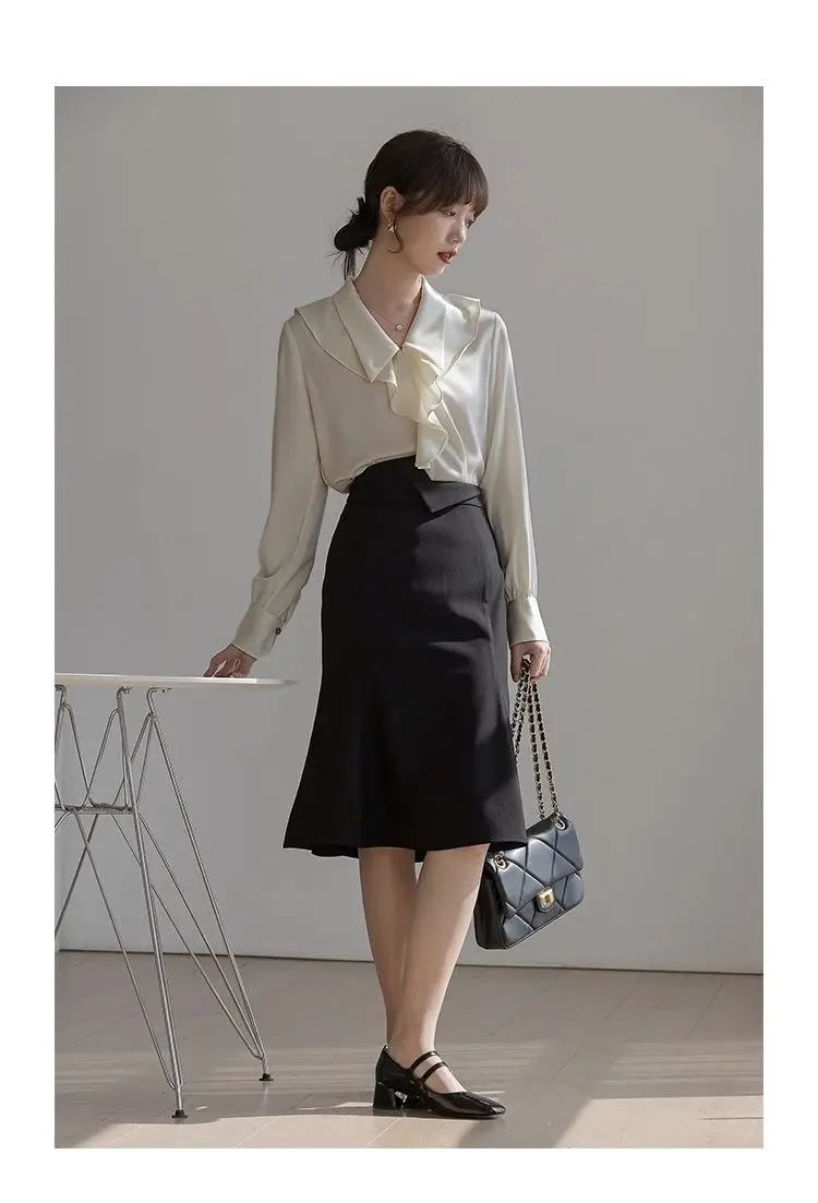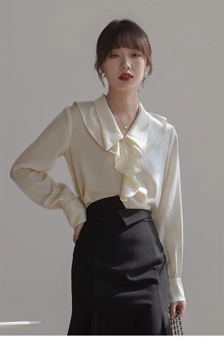 Mqtime - Autumn New French Ruffled Senior Niche Formal Interview Elegant Professional Temperament Long-sleeved Shirt