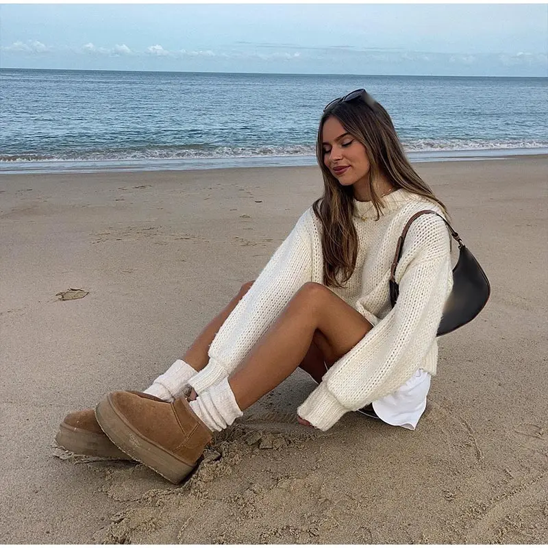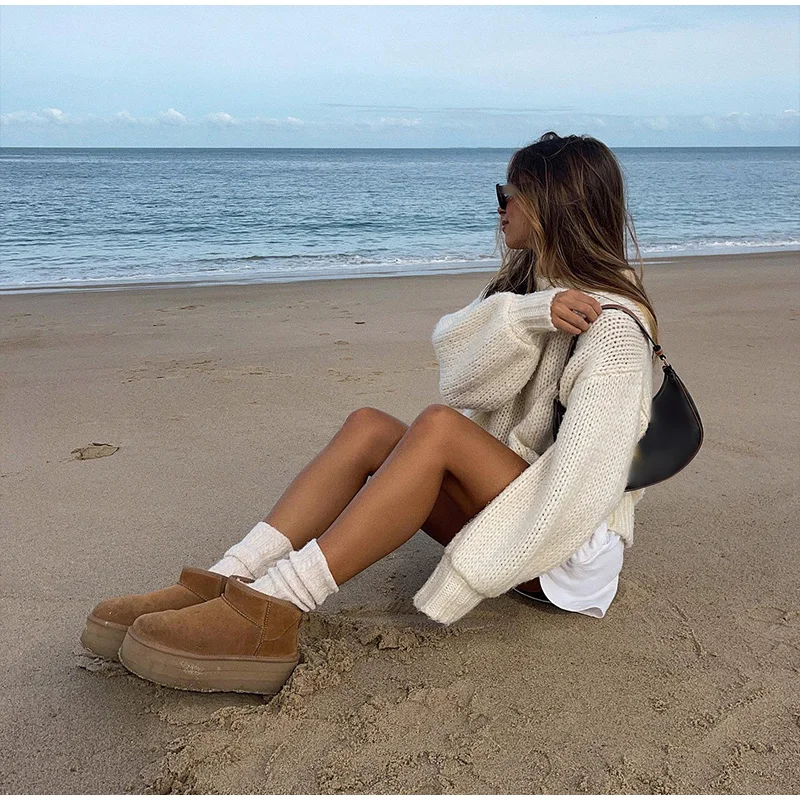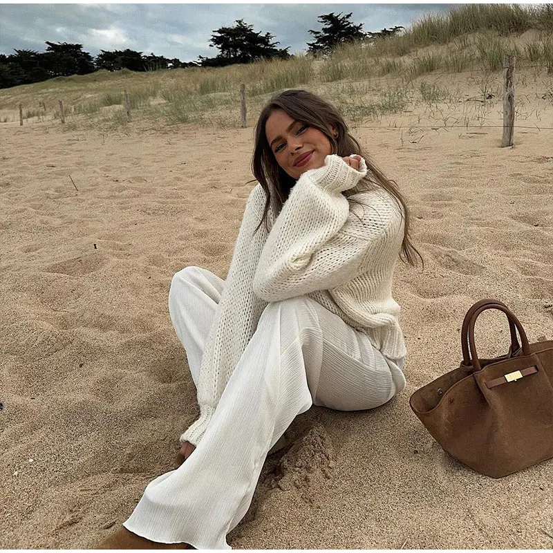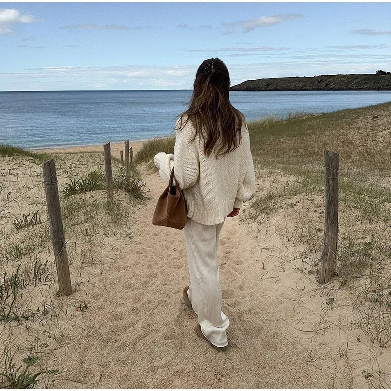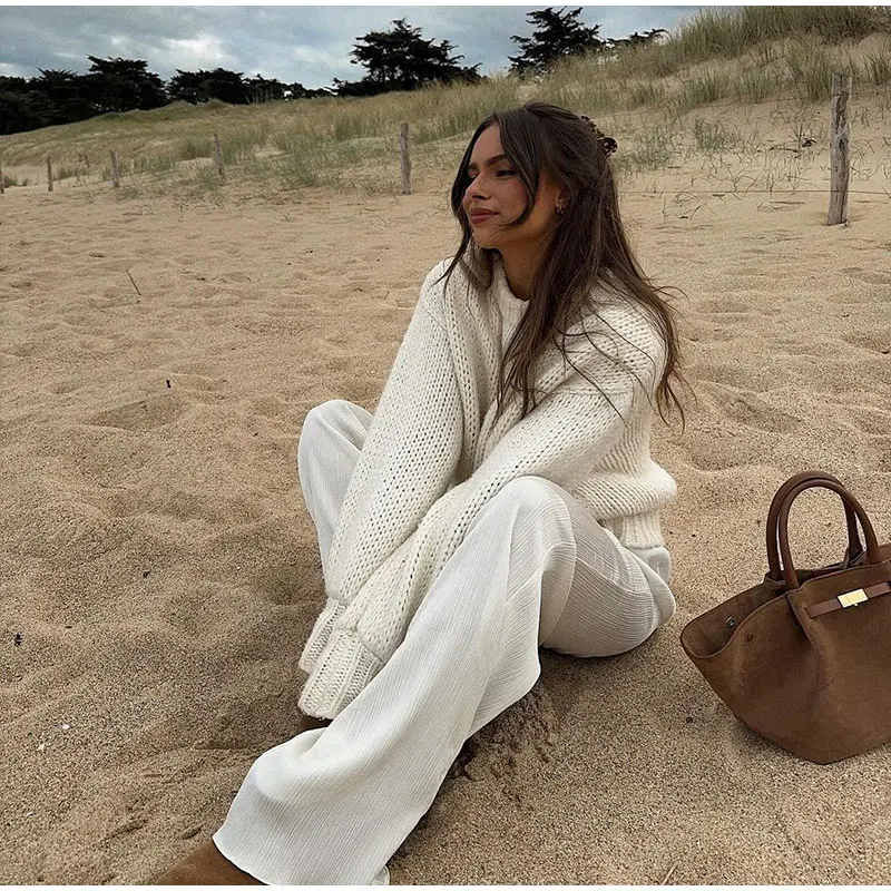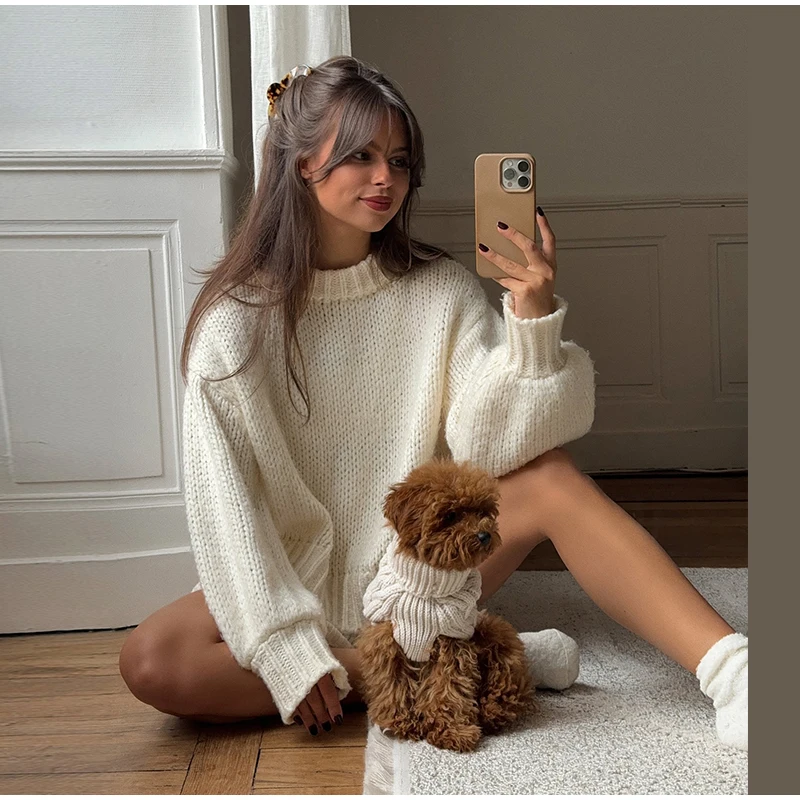MQTIME - Autumn Solid Wool Blends Round Neck Knitted Pullover Women Casual Lattern Long Sleeve Loose Warm Sweater New Streetwear lady